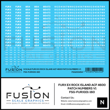 N Scale FURX Ex Rock Island Acf 4600 Patch Numbers V1 Decal Set