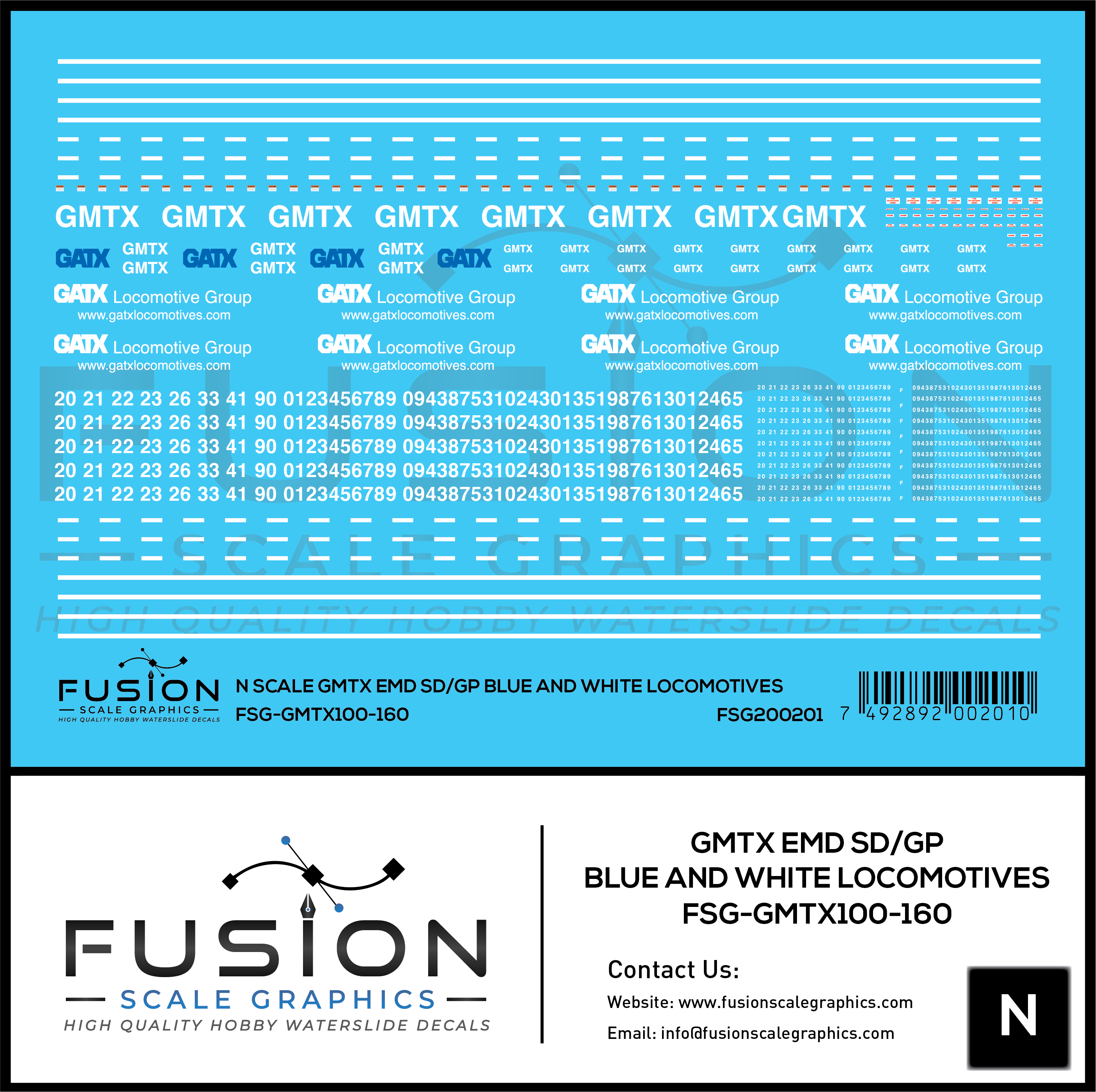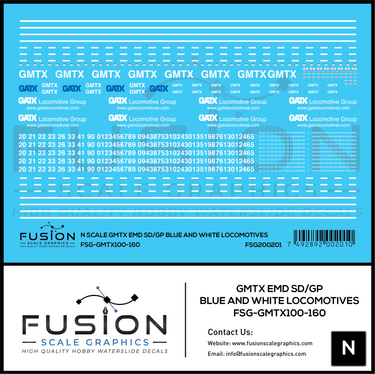 N Scale GMTX EMD SD/GP Blue and White Locomotives Decal Set