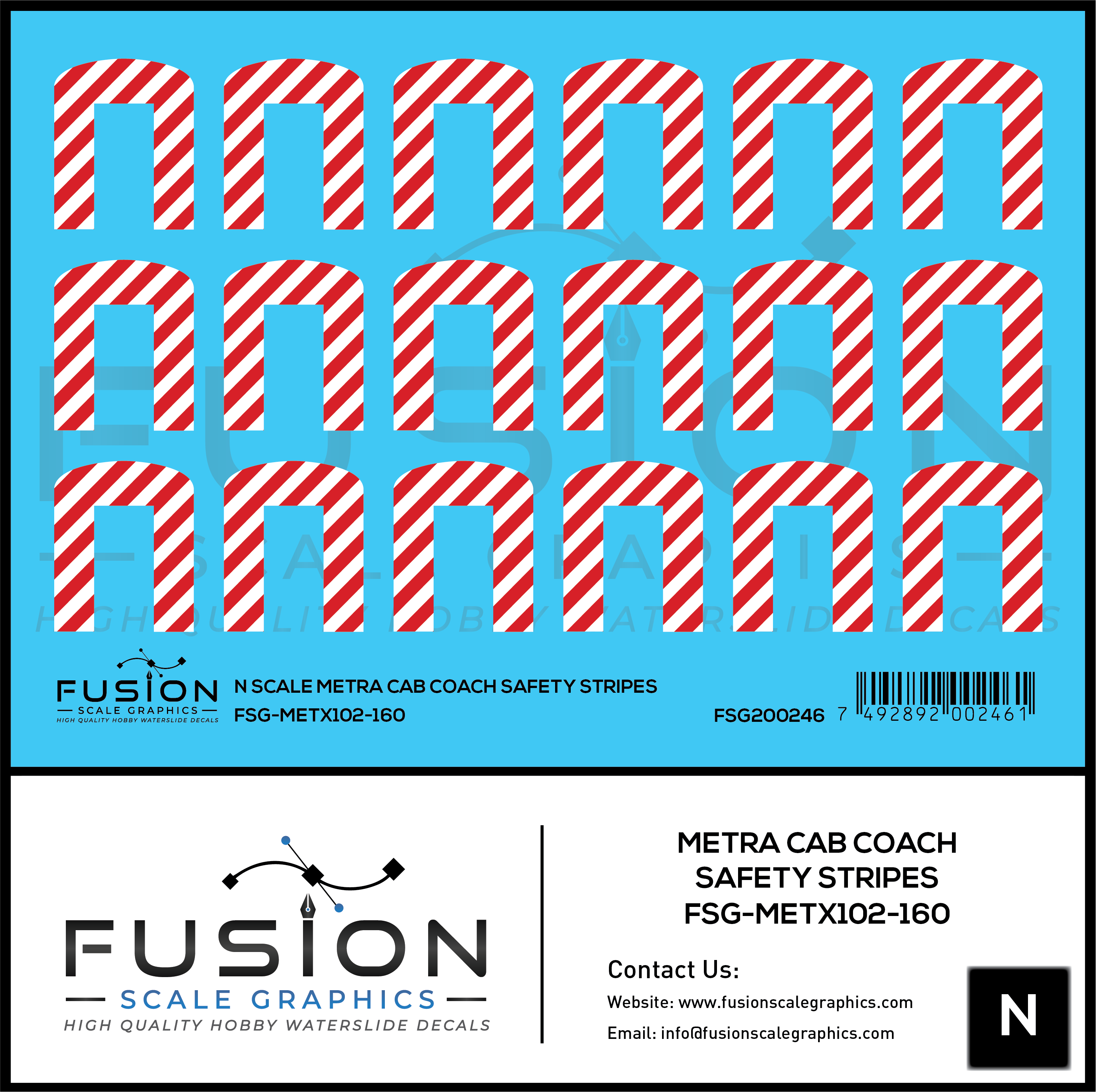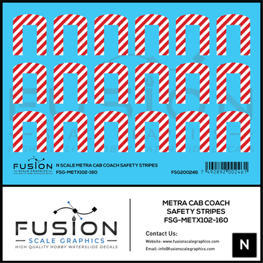 N Scale Metra Cab Coach Safety Stripes Decal Set