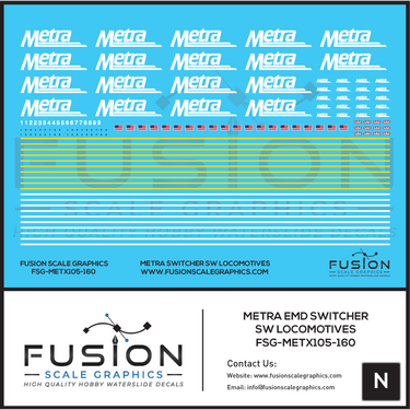 N Scale Metra EMD SW Switcher Locomotives Decal Set