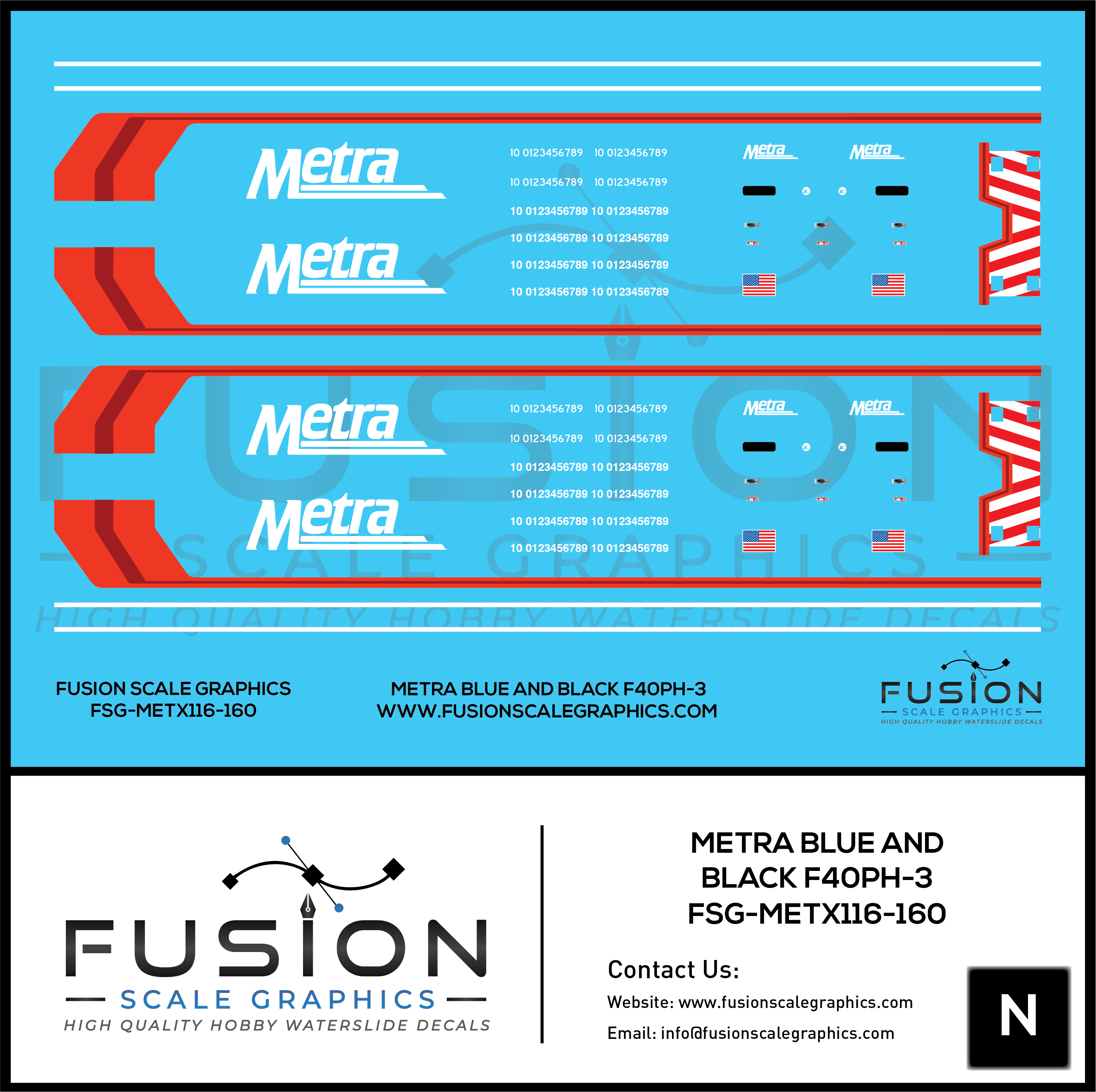 N Scale Metra F40PH-3 Blue & Black Locomotive Decal Set.
