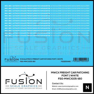 N Scale MWCX Freight Car Patching Decal Set Font 1 White