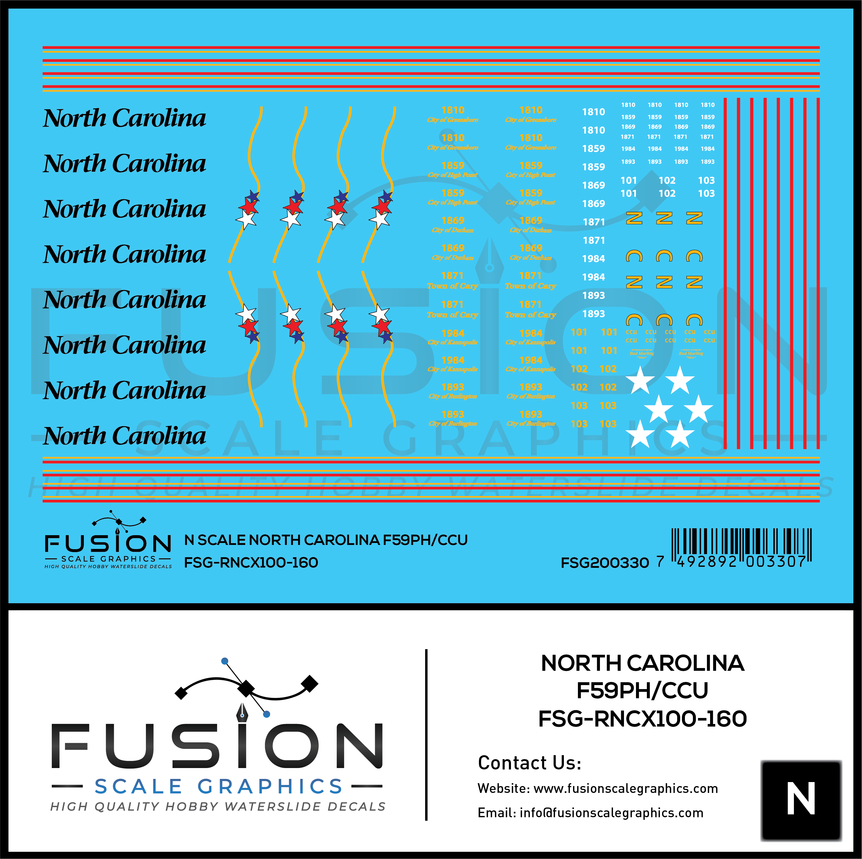 Home Shop Fusion Scale Graphics N Scale North Carolina DOT EMD F59PH/CCU Decal Set