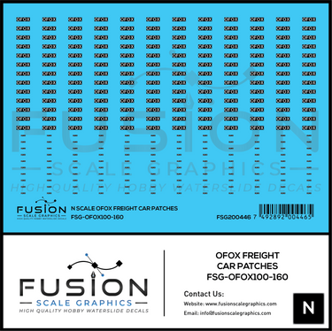 Ideal for scale model railroaders, the OFOX White/Black Freight Car Patch Outs Decal Set is designed to bring your layouts to life. Whether you're a beginner or a seasoned enthusiast, these decals offer easy application and durability, making them perfect for creating a weathered and authentic look on your N Scale freight cars. Elevate your modeling experience with decals that meet the highest standards of craftsmanship and detail.