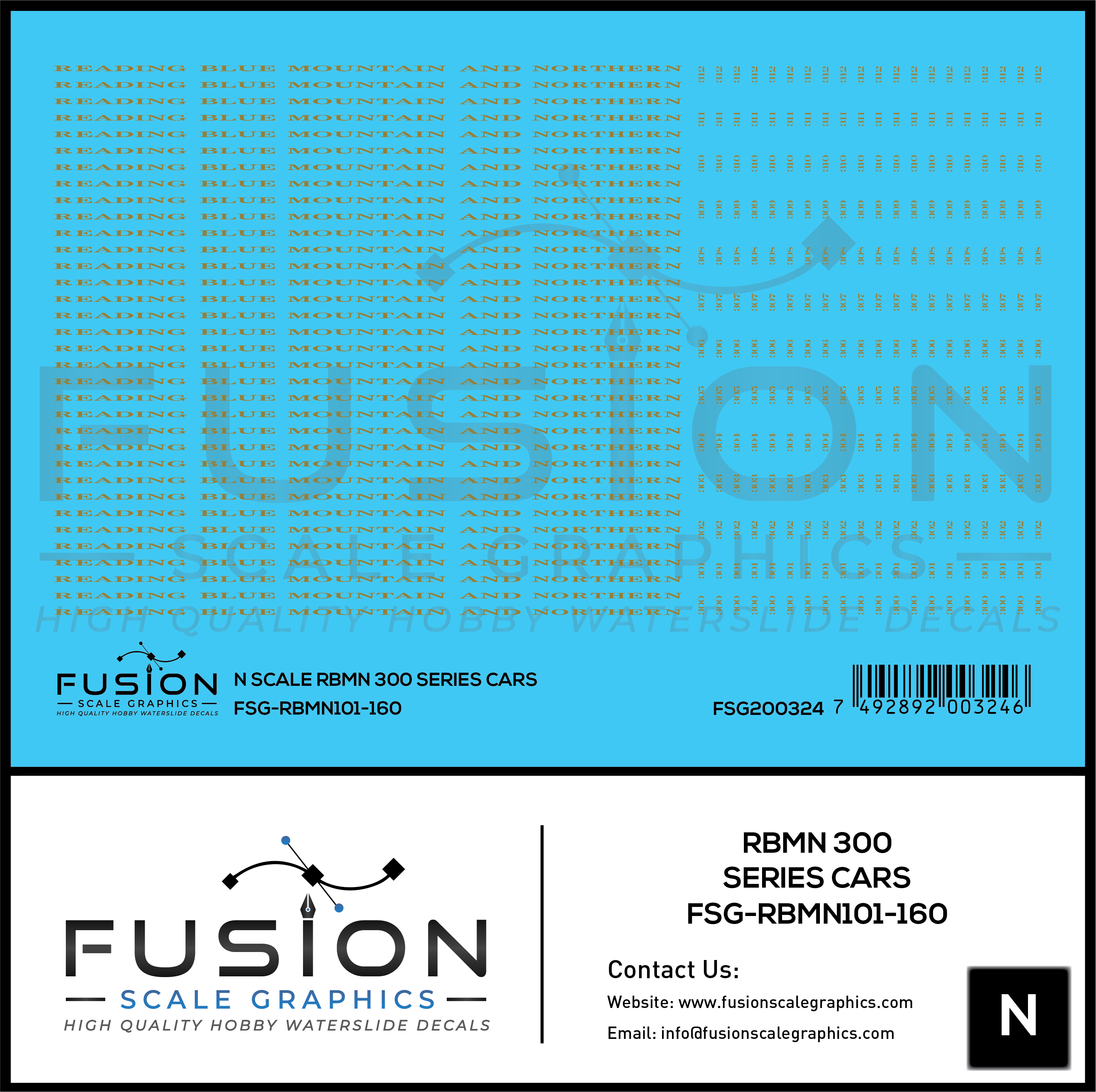 Home Shop Fusion Scale Graphics N Scale Reading Blue Mountain & Northern 300 Series Passenger Cars Decal Set