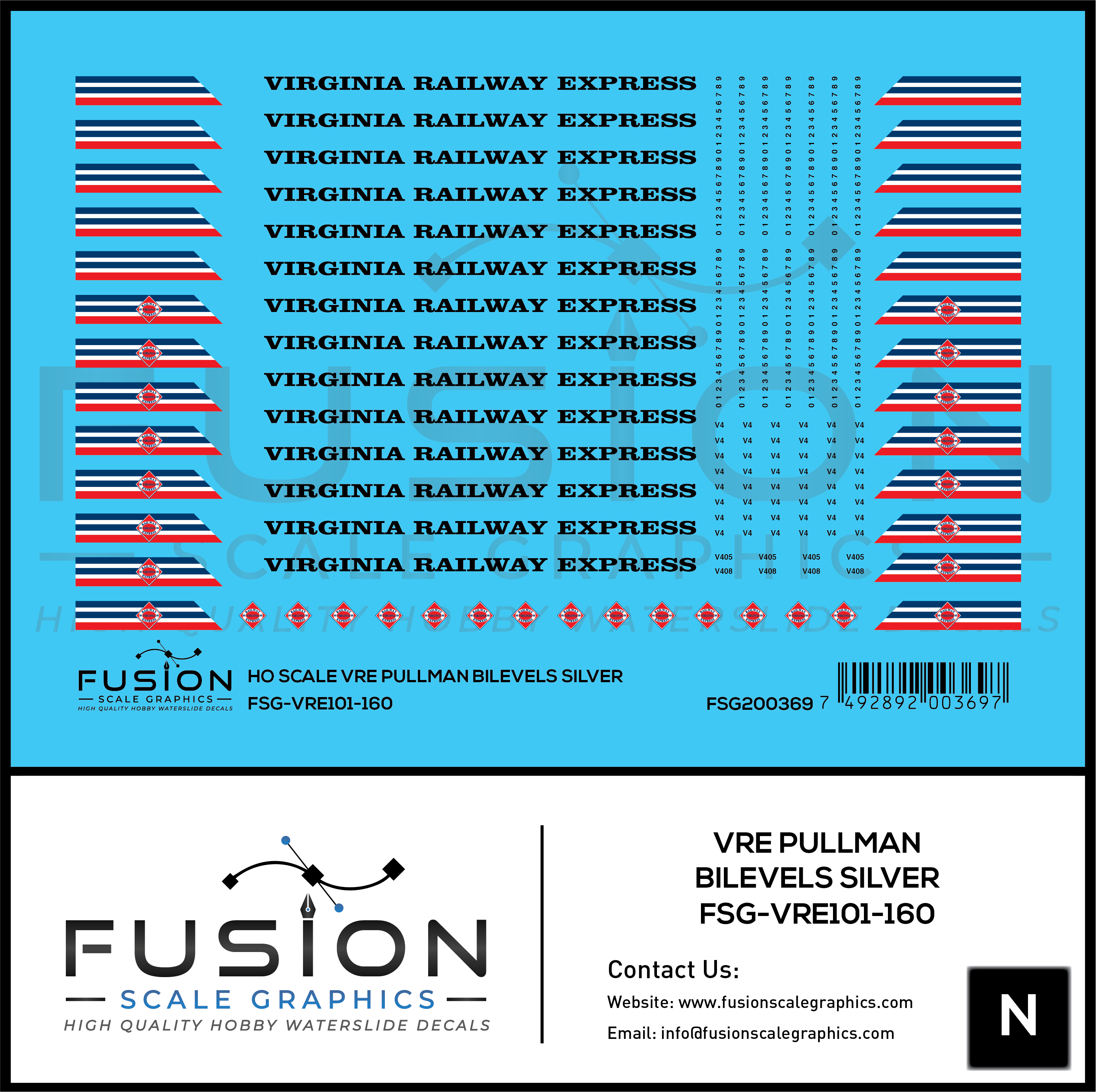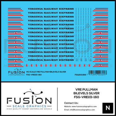 N Scale VRE Virginia Railway Express Silver Pullman Bilevel Decal Set