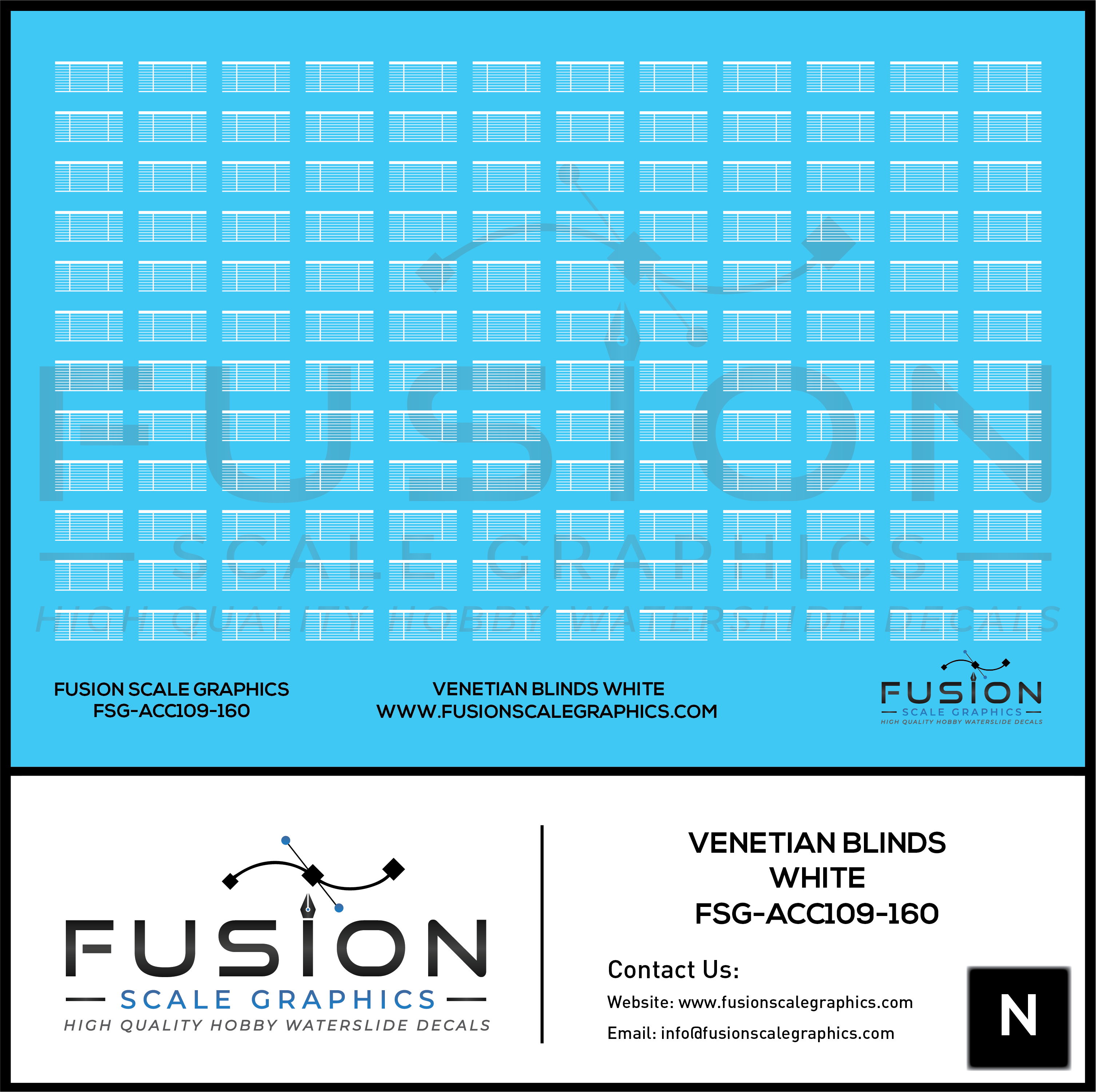 N Scale White Venetian Blinds for Passenger Cars Decal Set