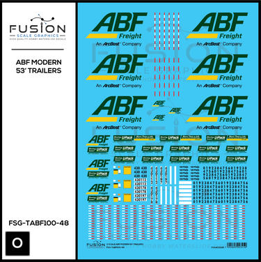 O Scale ABF Freight Modern 53' Truck Trailers Decal Set