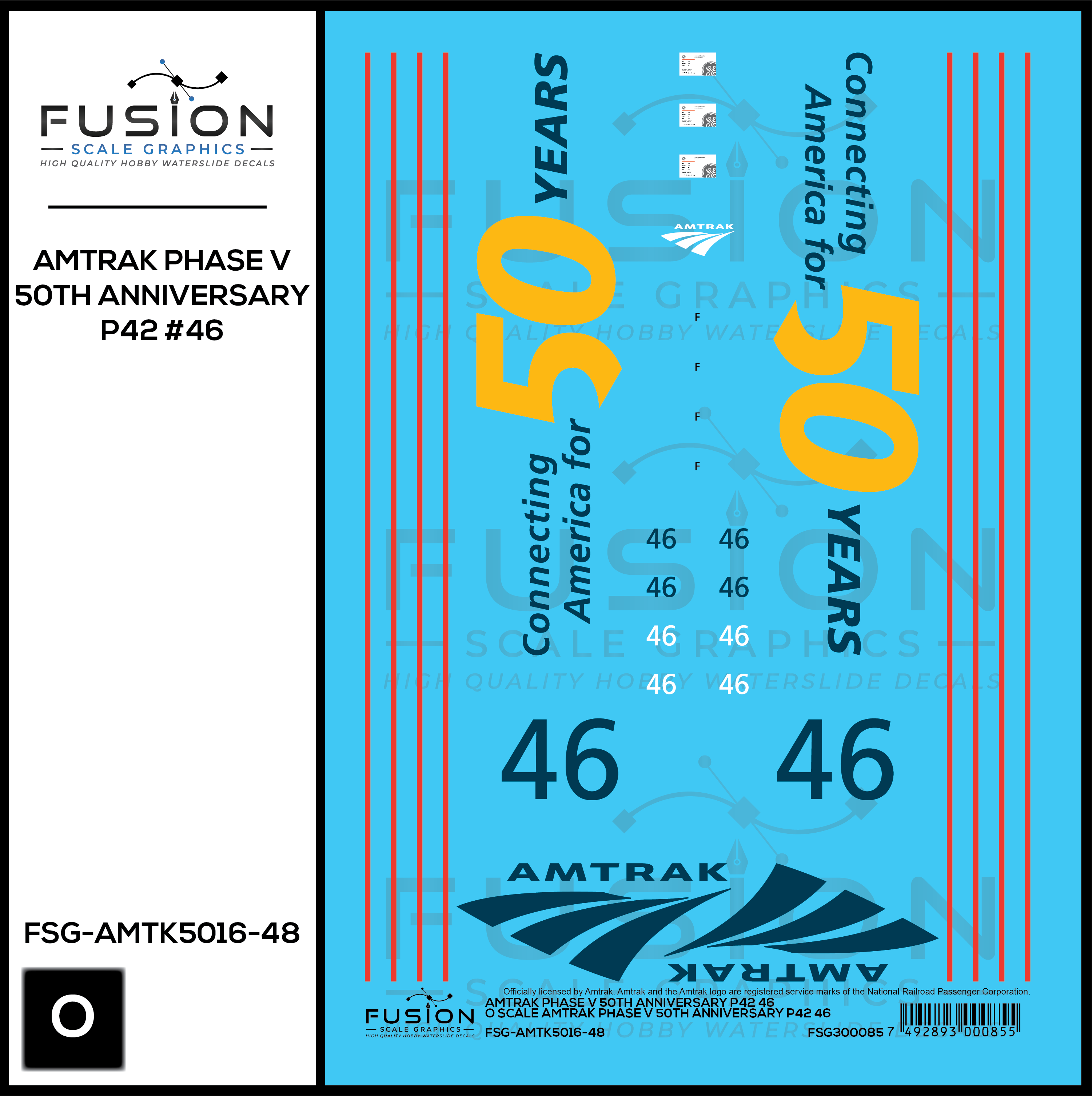 O Scale Amtrak Phase V 50th Anniversary P42 46 Locomotive Decal Set