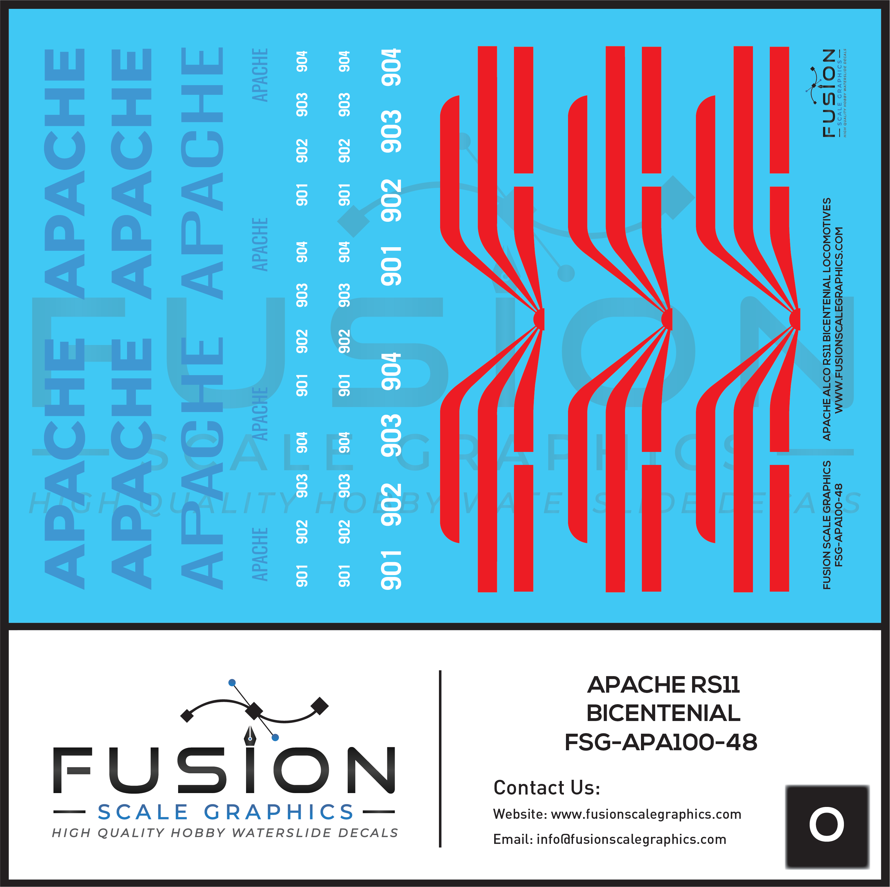 O Scale Apache Alco RS11 Bicentenial Locomotives Decal Set
