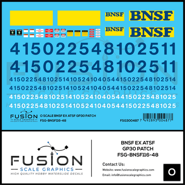 O Scale BNSF Ex Santa Fe GP30 Patch Decal Set