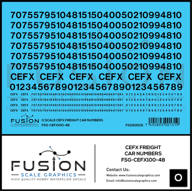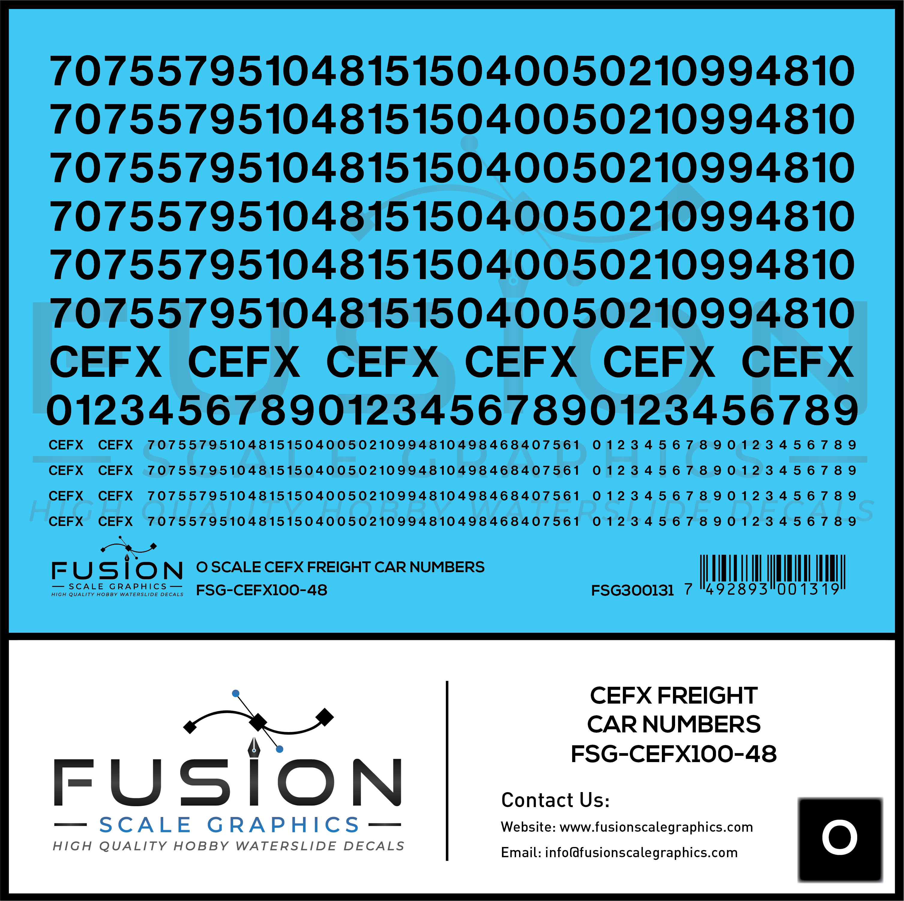 Home Shop Fusion Scale Graphics O Scale CEFX Freight Car Numbering Decal Set