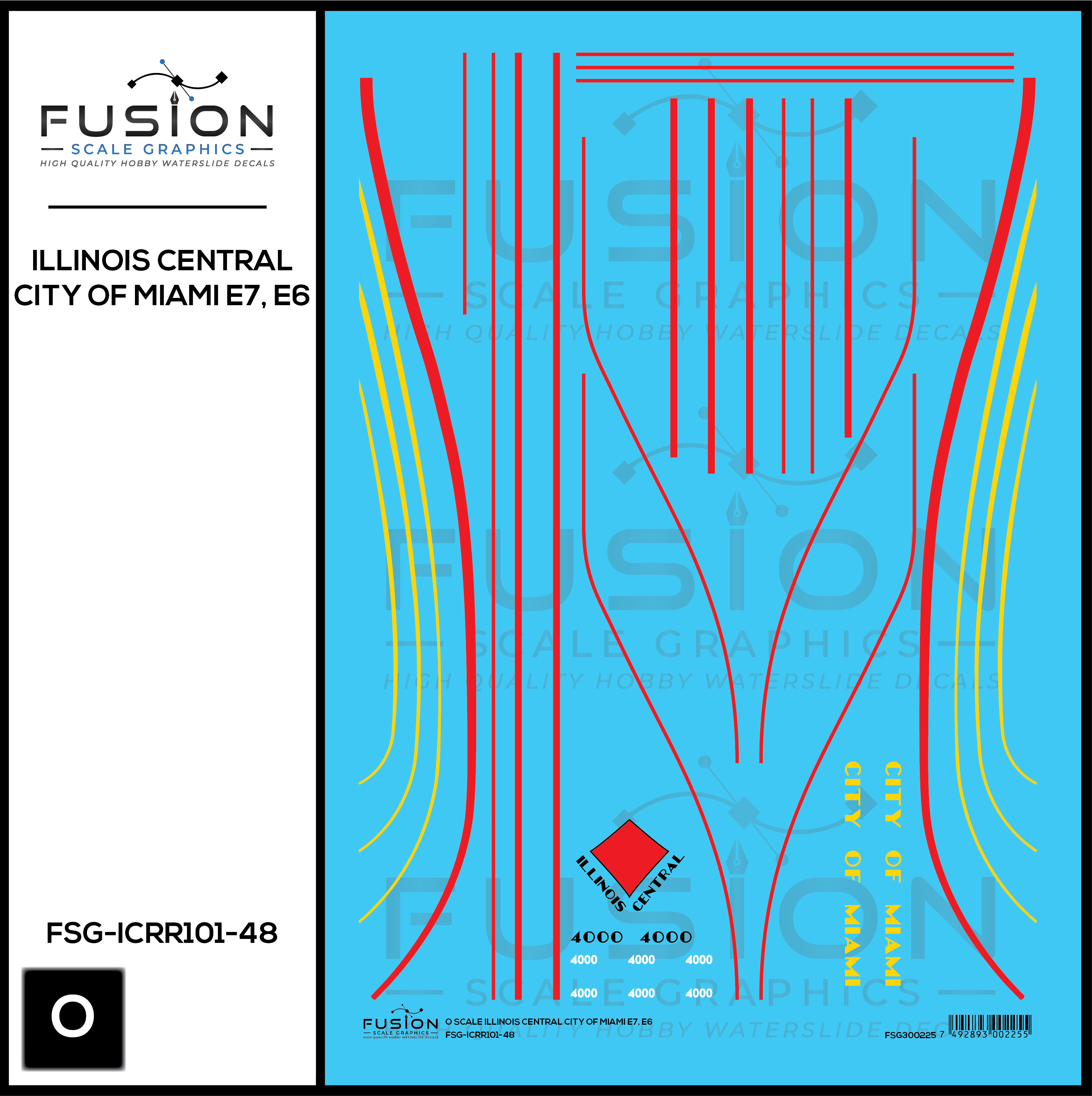O Scale Illinois Central City of Miami EMD E6 Locomotive Decal Set