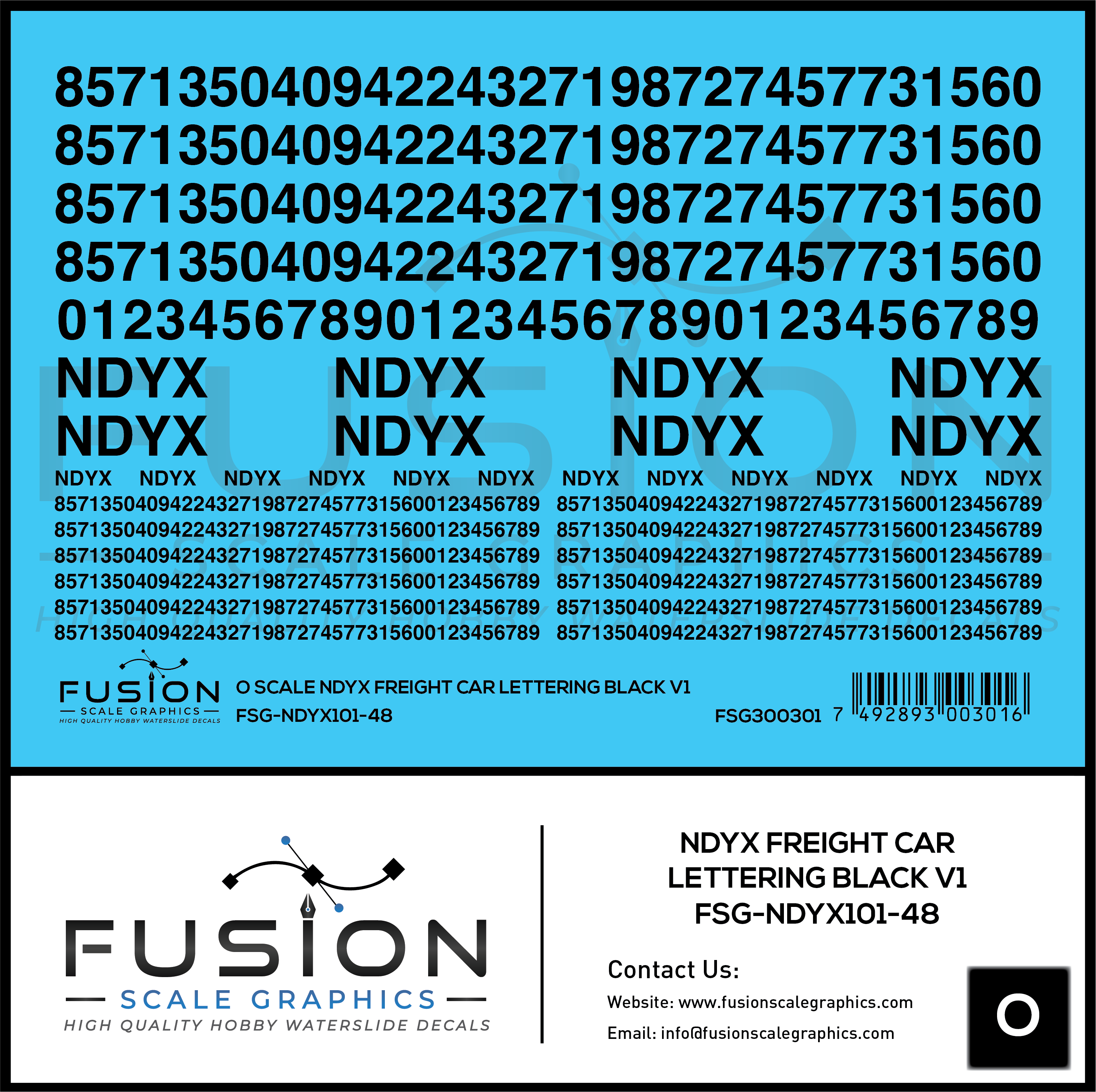 O Scale NDYX Black Freight Car Lettering V1 Decal Set