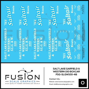 O Scale Salt Lake Garfield & Western Railway Boxcar 100 Decal Set.