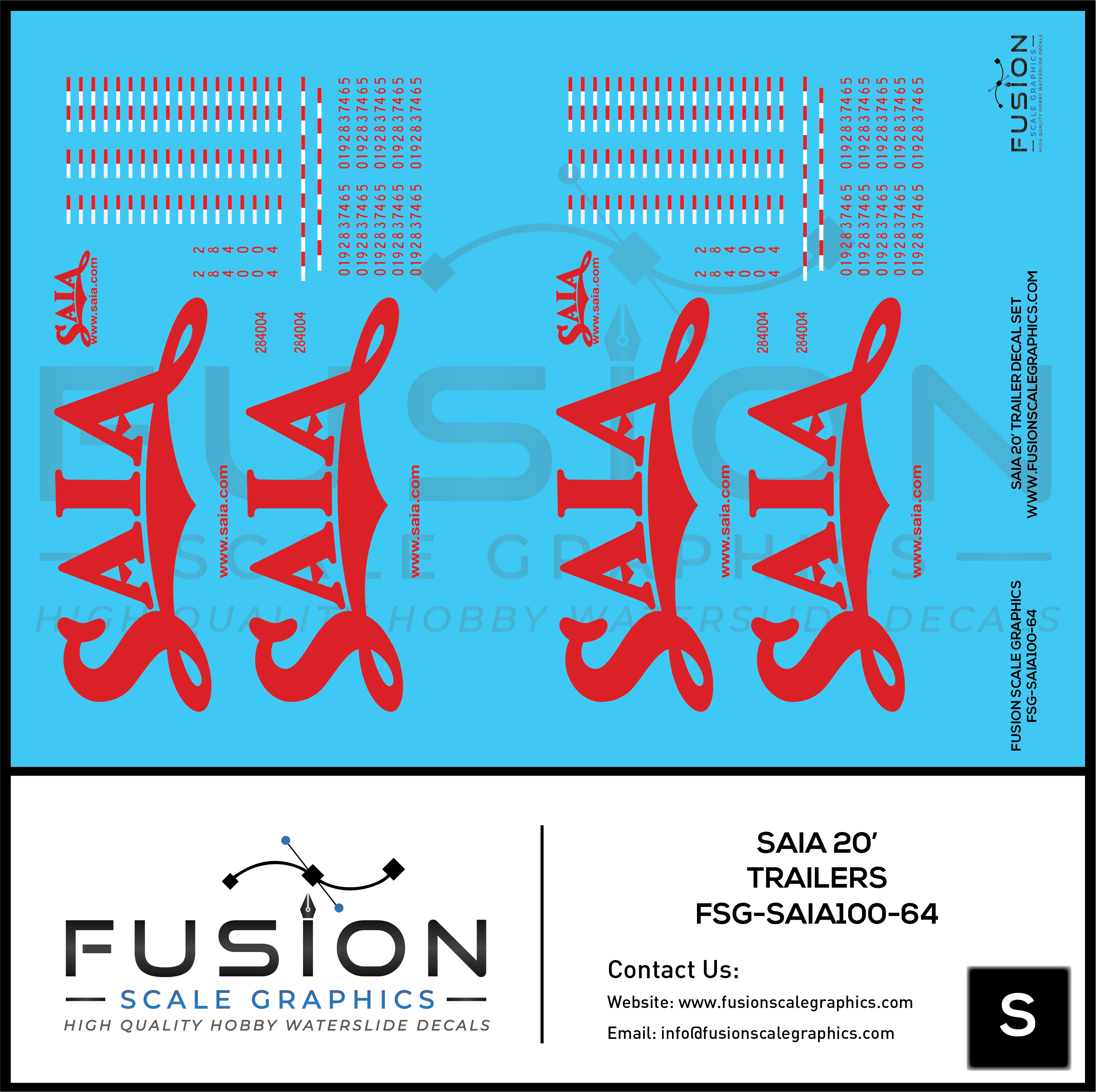Home Shop Fusion Scale Graphics S Scale 1:64 Saia 20' Trailer Decal Set