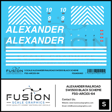 Alexander Railroad SW1500 Black Scheme Locomotive Decal Set