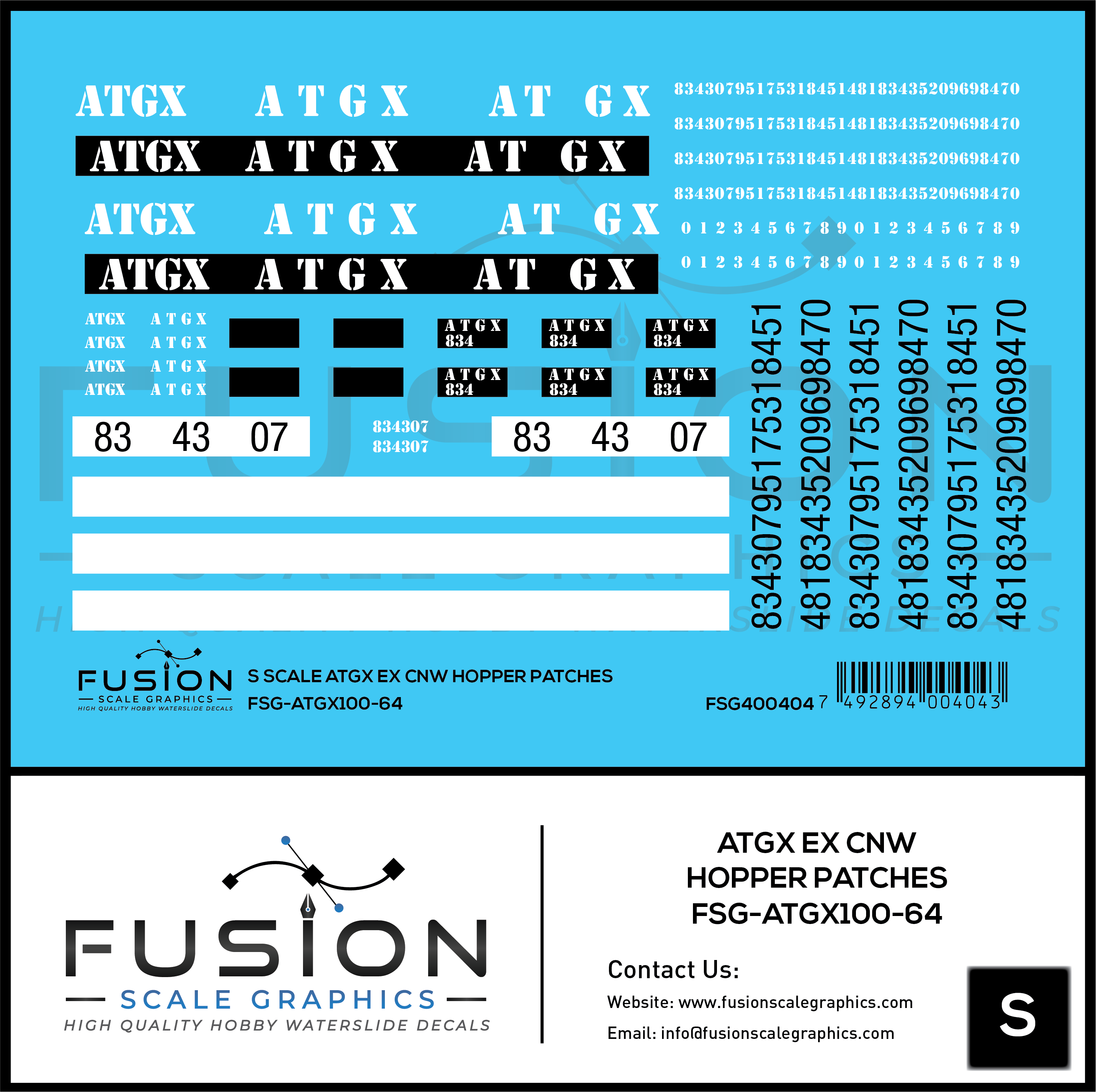 S Scale ATGX Ex CNW Hopper Patches Decal Set