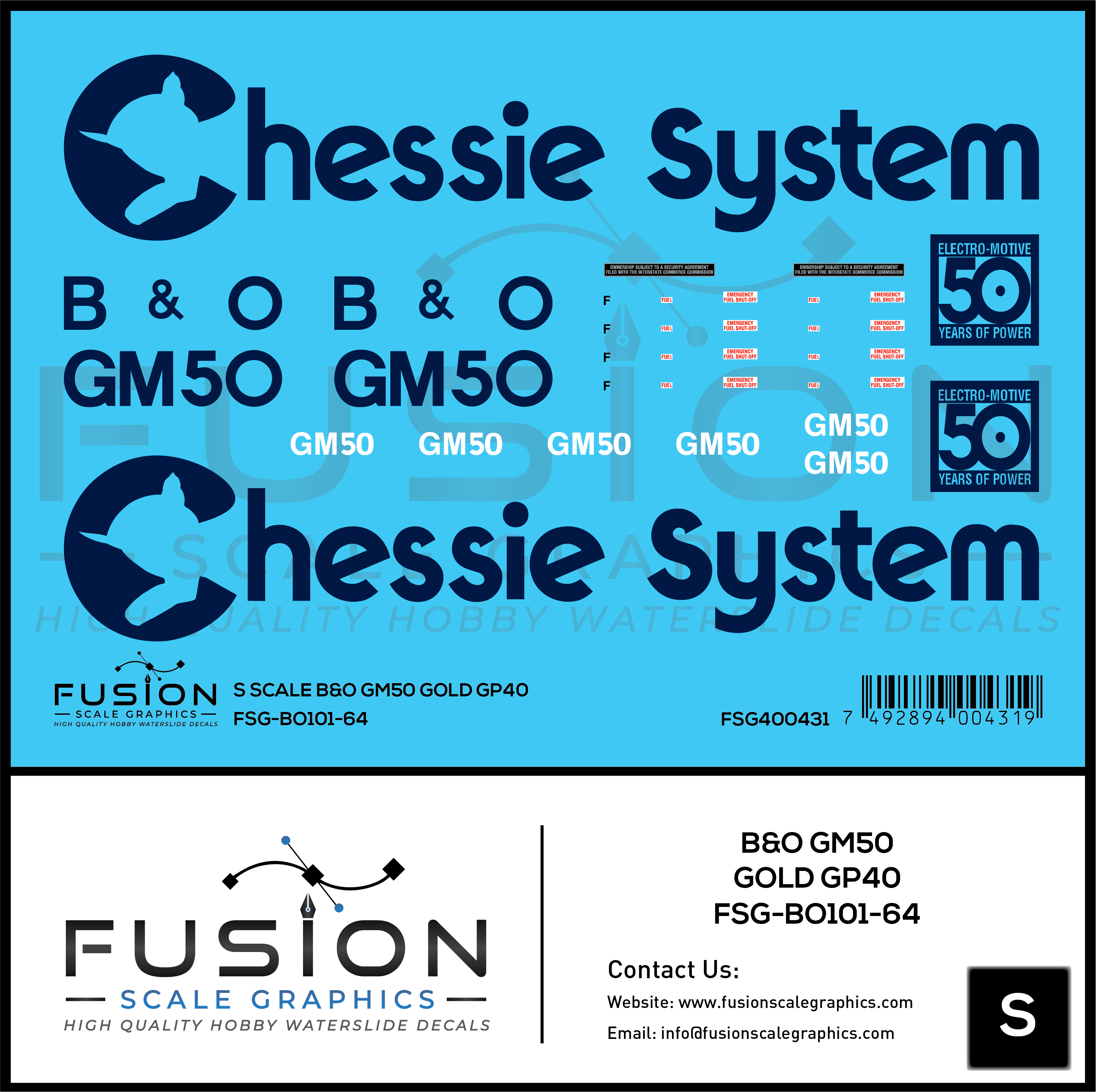 Home Shop Fusion Scale Graphics S Scale Baltimore & Ohio EMD 50 Year GM50 Gold GP40 Locomotive Decal Set
