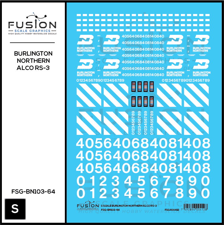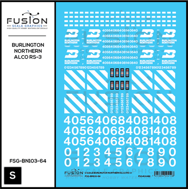 S Scale Burlington Northern Alco RS3 Locomotive Decal Set