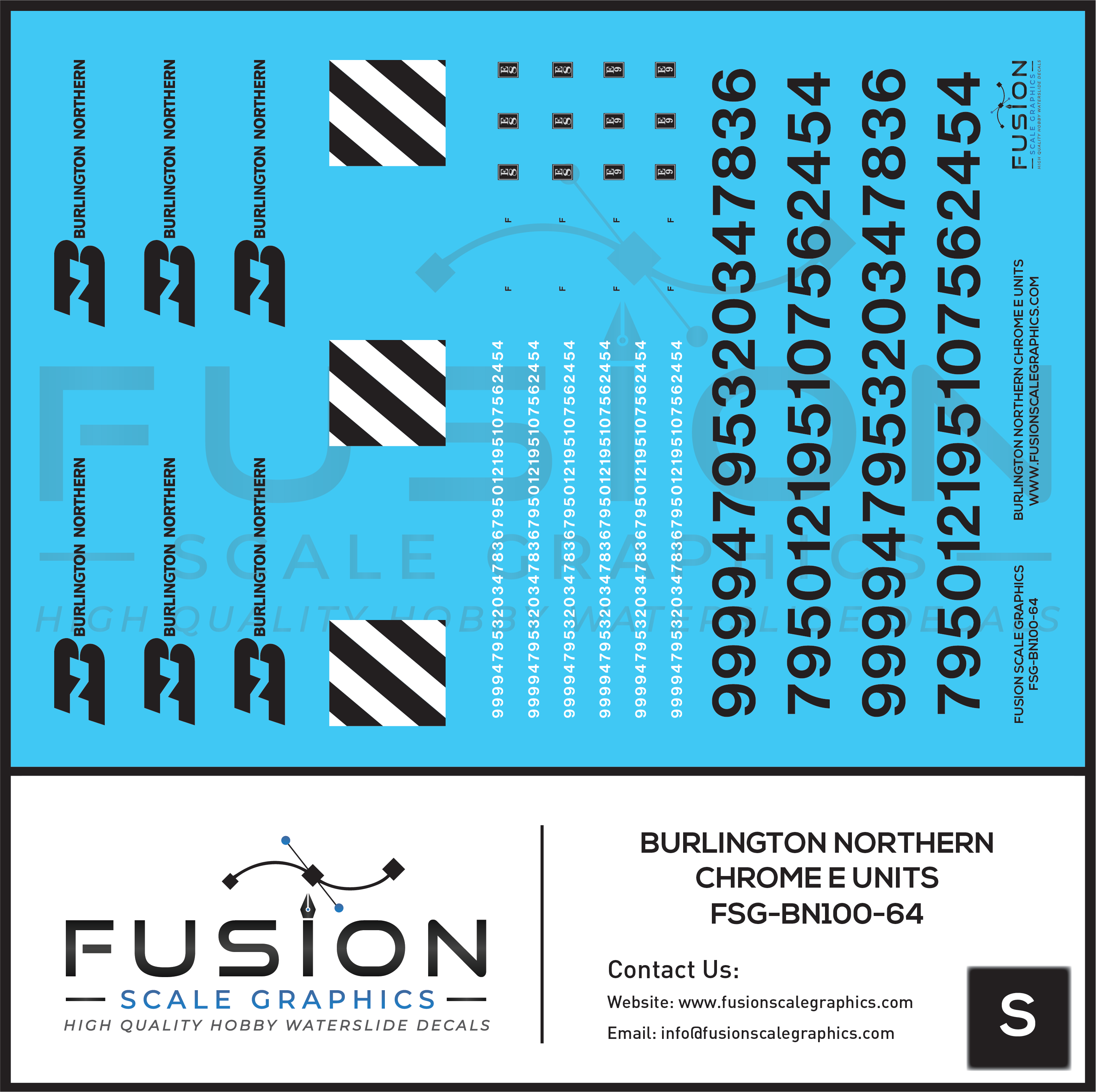 S Scale Burlington Northern Chrome E8 E9 Locomotive Decal Set