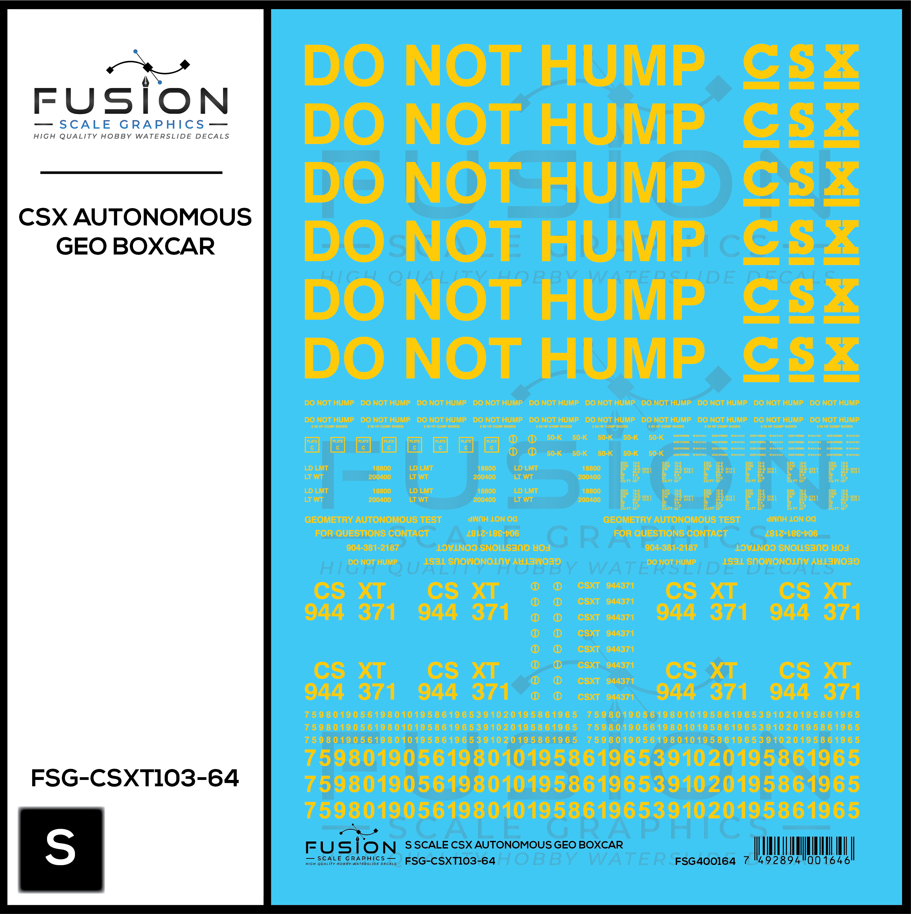 S Scale CSX Autonomous Geometry Test Car Boxcar Decal Set