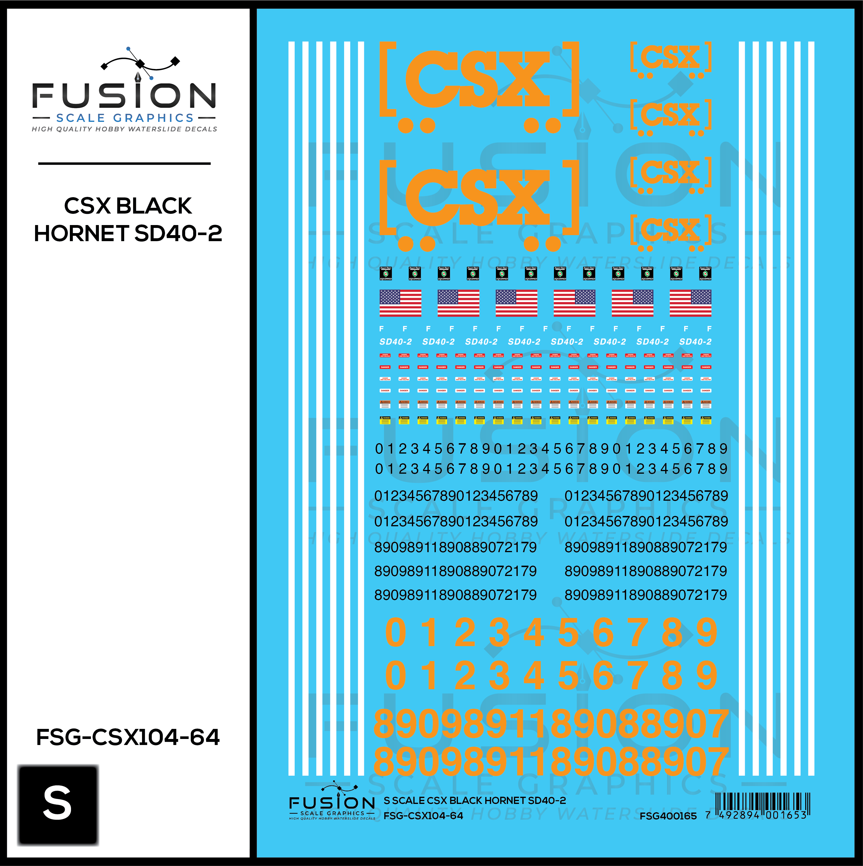 S Scale CSX Black Hornet EMD SD40-2 Locomotive Decal Set