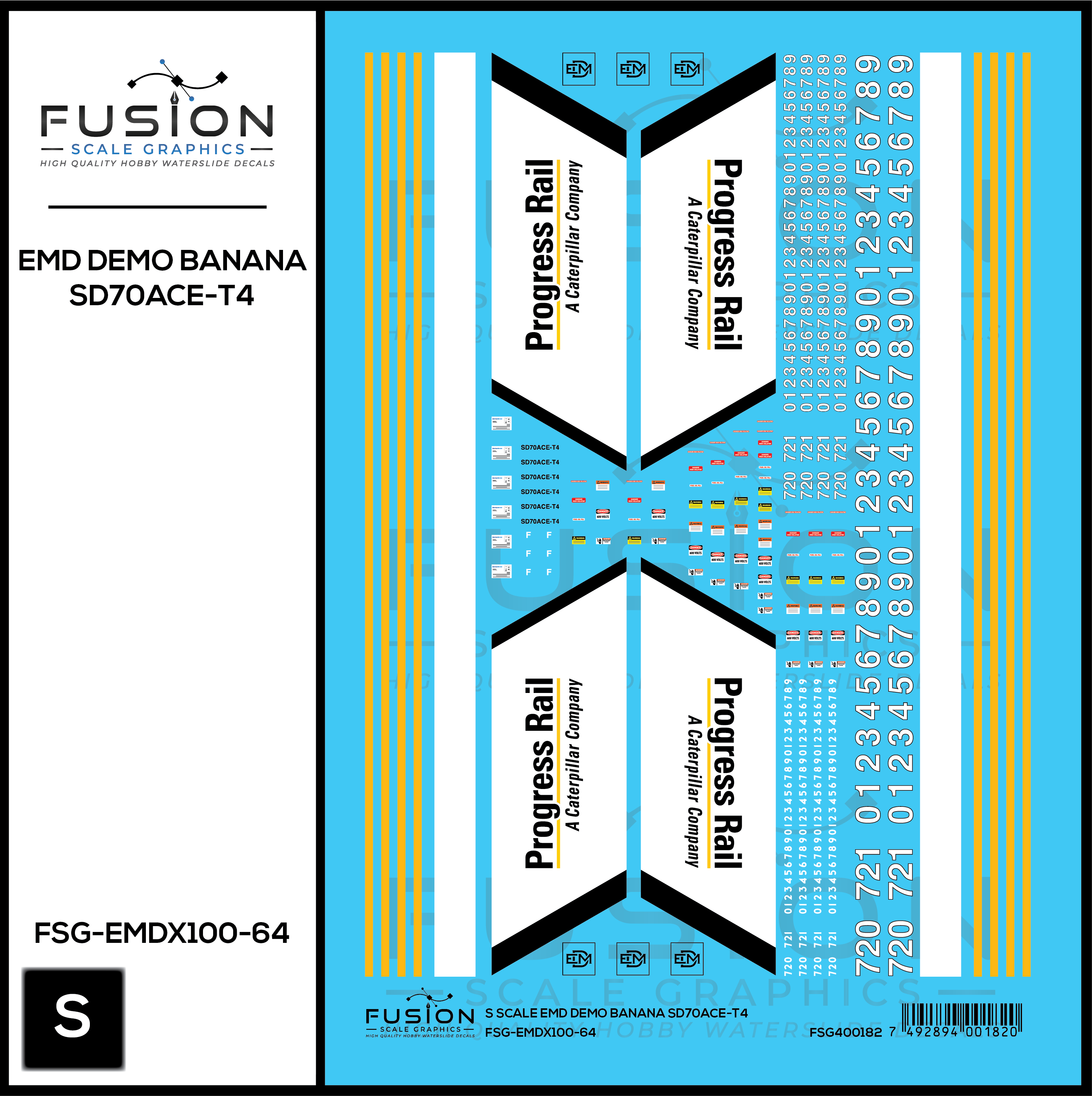 S Scale EMD Demo Banana SD70ACE-T4 Locomotive Decal Set