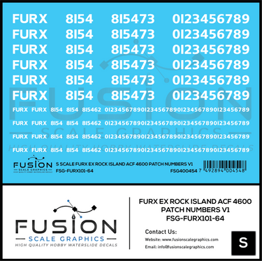 S Scale FURX Ex Rock Island Acf 4600 Patch Numbers V1 Decal Set