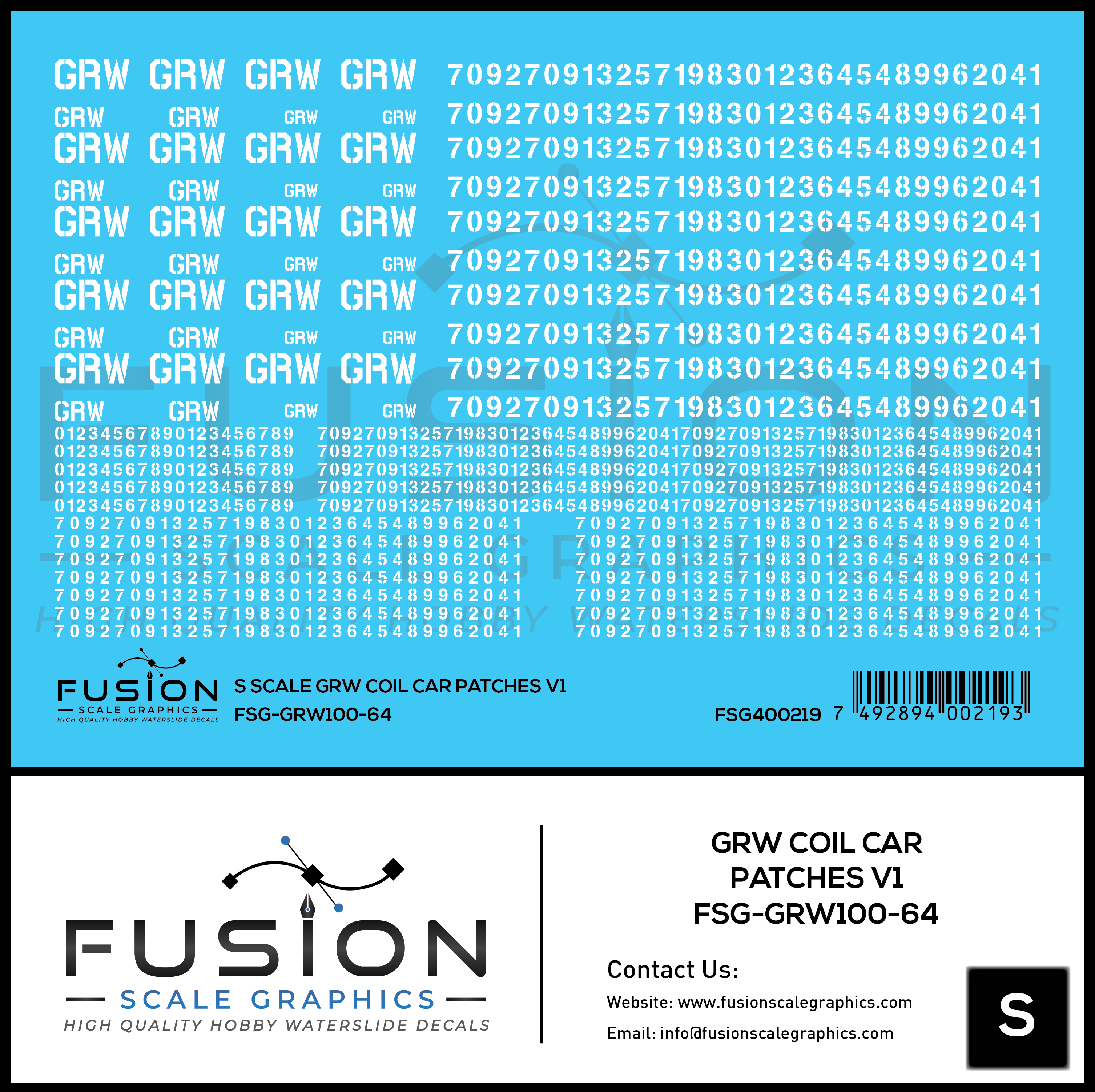 S Scale GRW Ex EJE Coil Cars Patch Decal Set