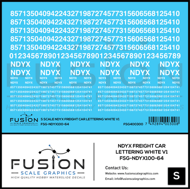 Home Shop Fusion Scale Graphics S Scale NDYX White Freight Car Lettering V1 Decal Set