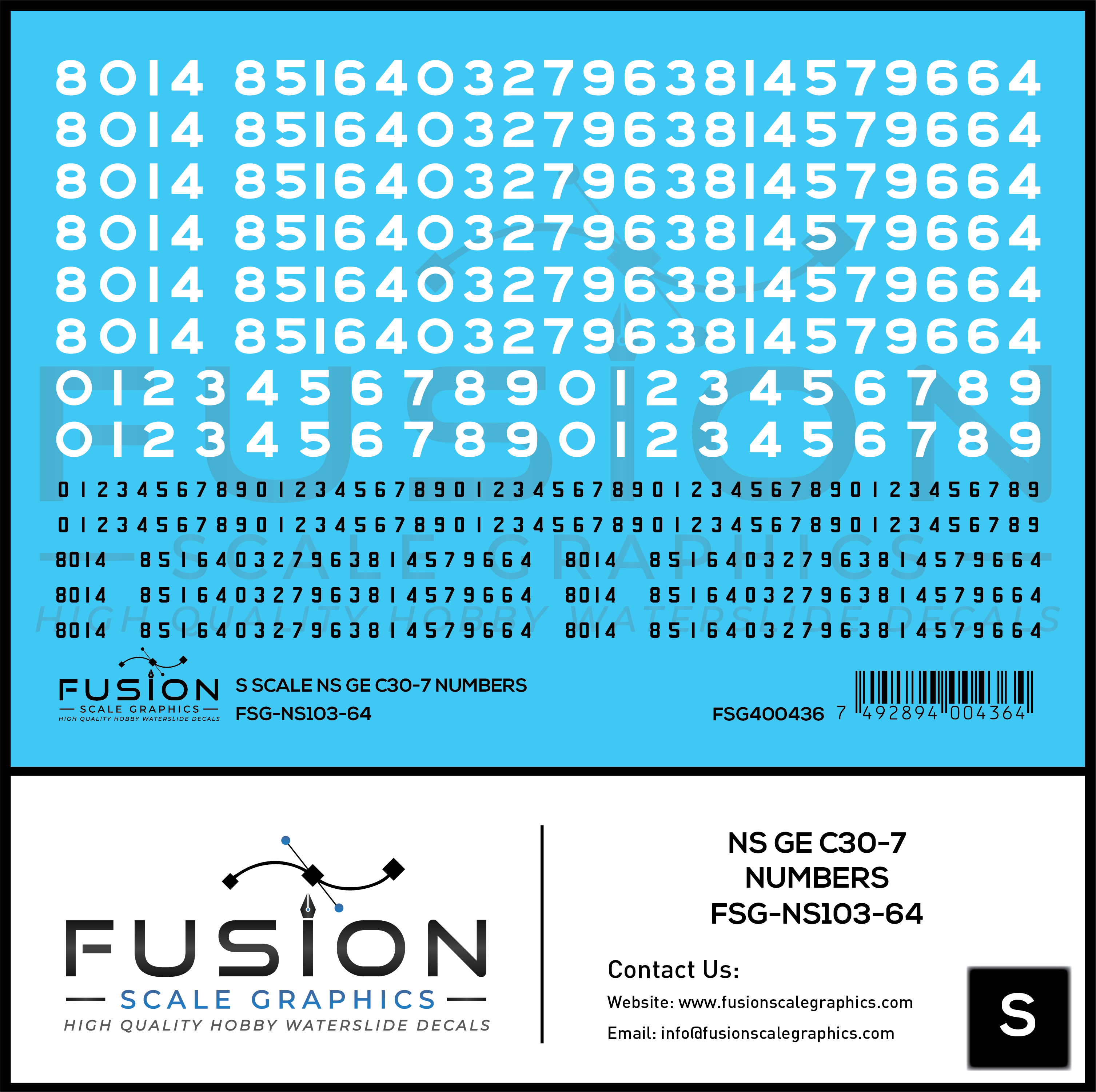 S Scale Norfolk Southern GE C30-7 Locomotive Renumber Decal Set