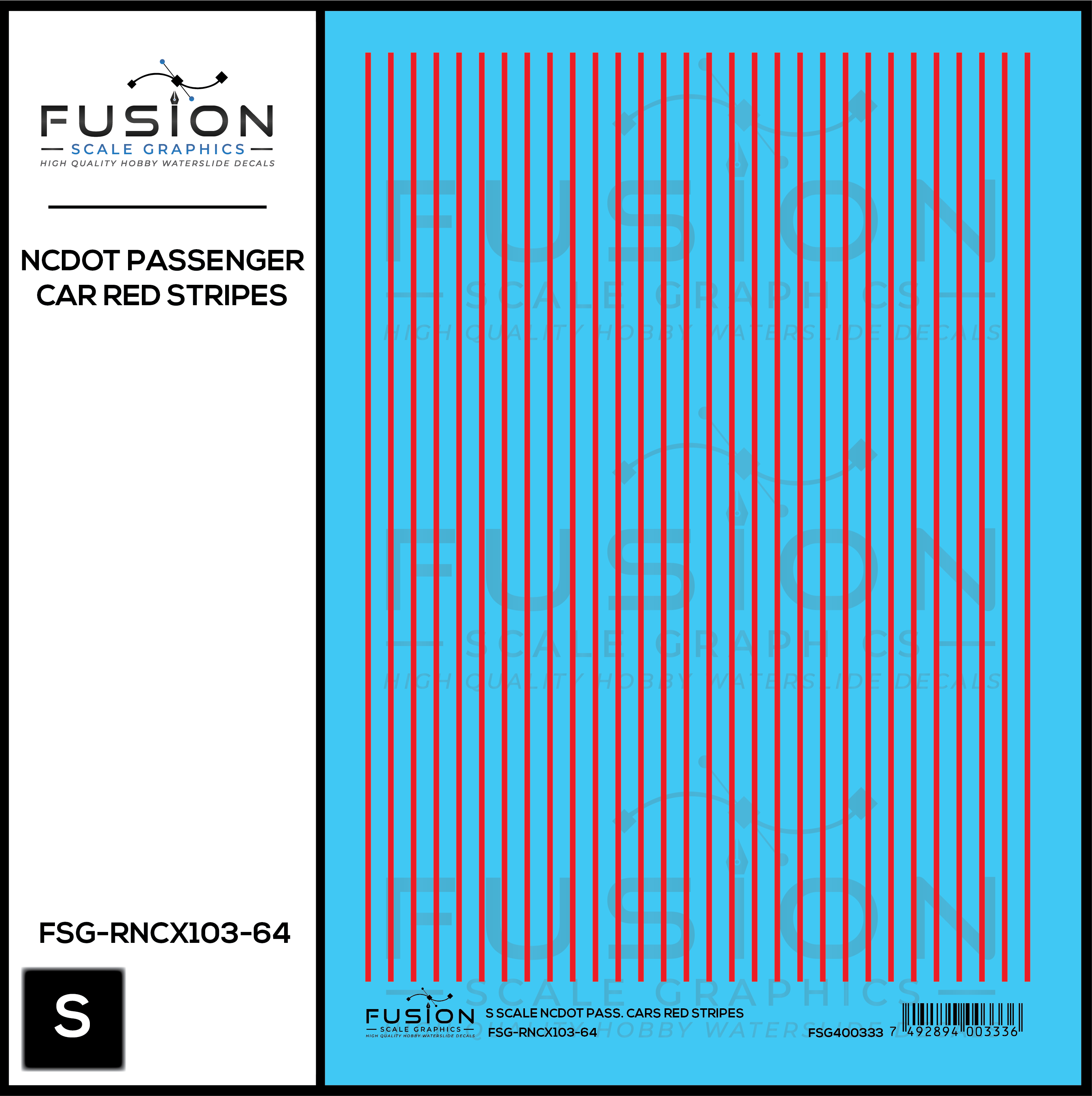 S Scale North Carolina DOT Passenger Car Red Stripes Decal Set