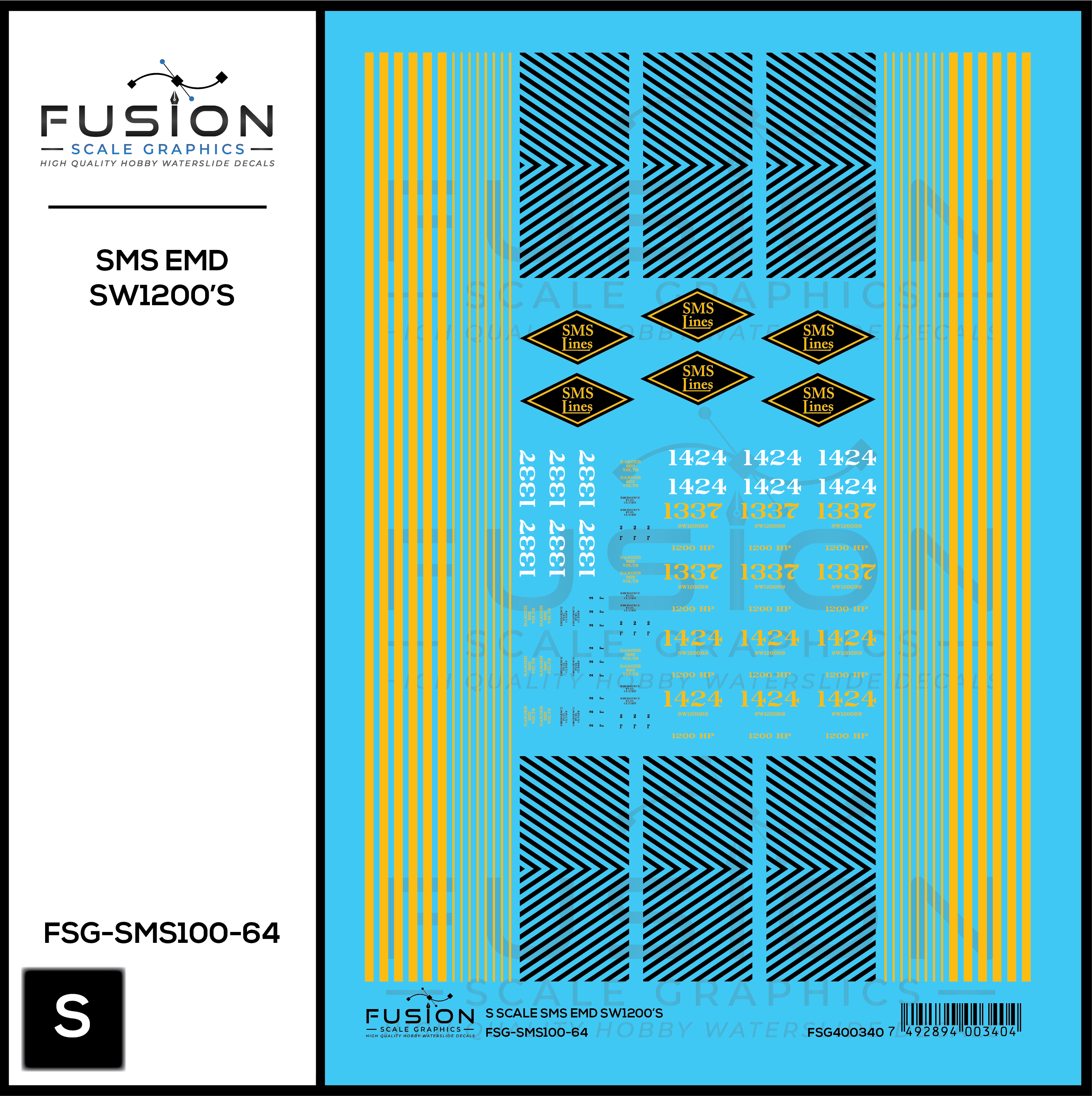 S Scale SMS Lines EMD SW1200 Locomotives Decal Set