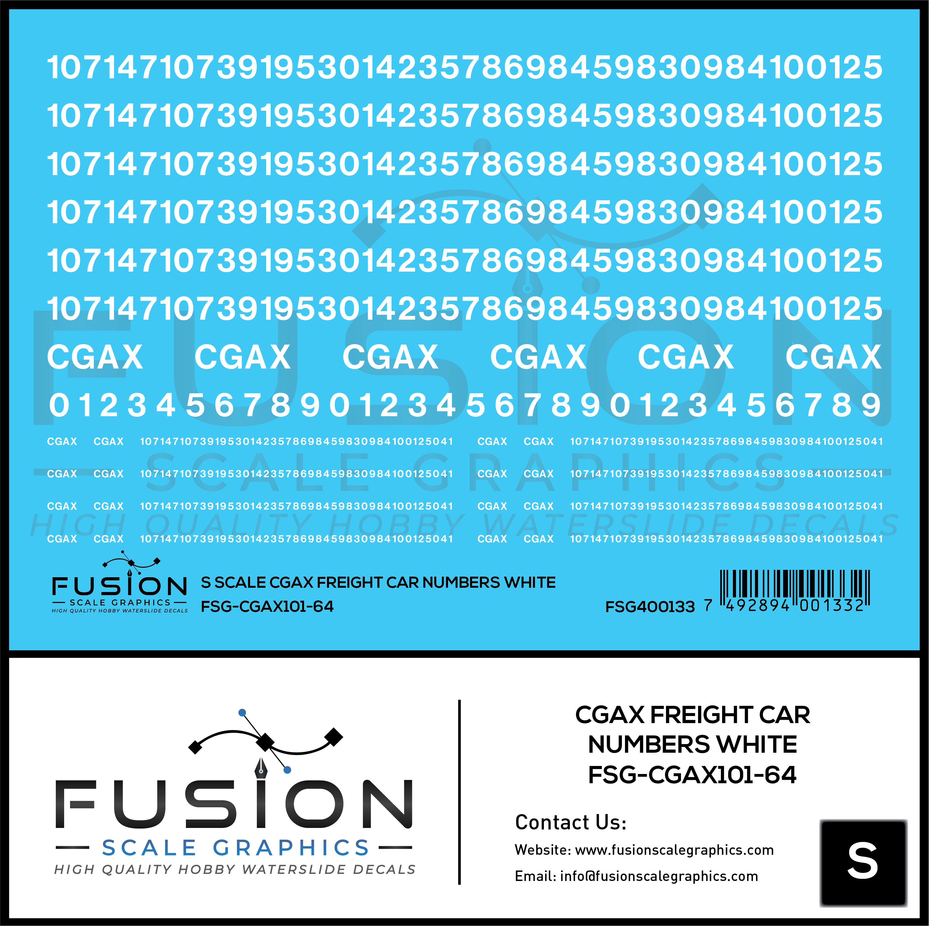 Home Shop Fusion Scale Graphics S Scale White CGAX Freight Car Numbering Decal Set