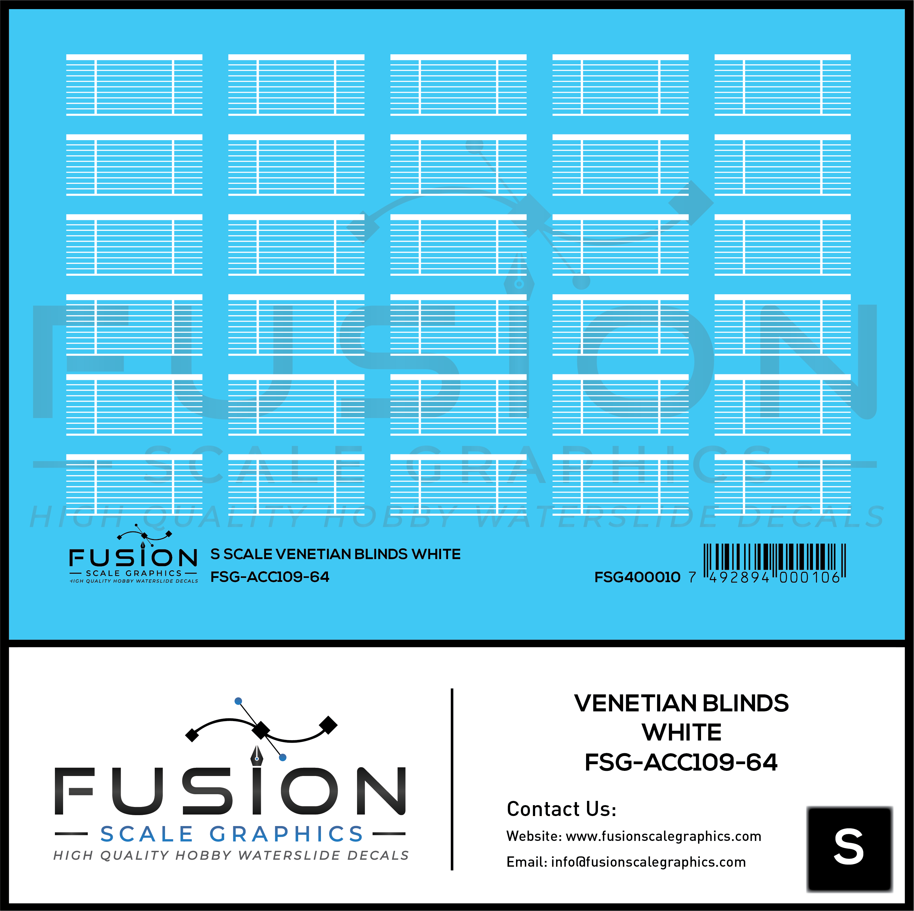 S Scale White Venetian Blinds For Passenger Cars Decal Set