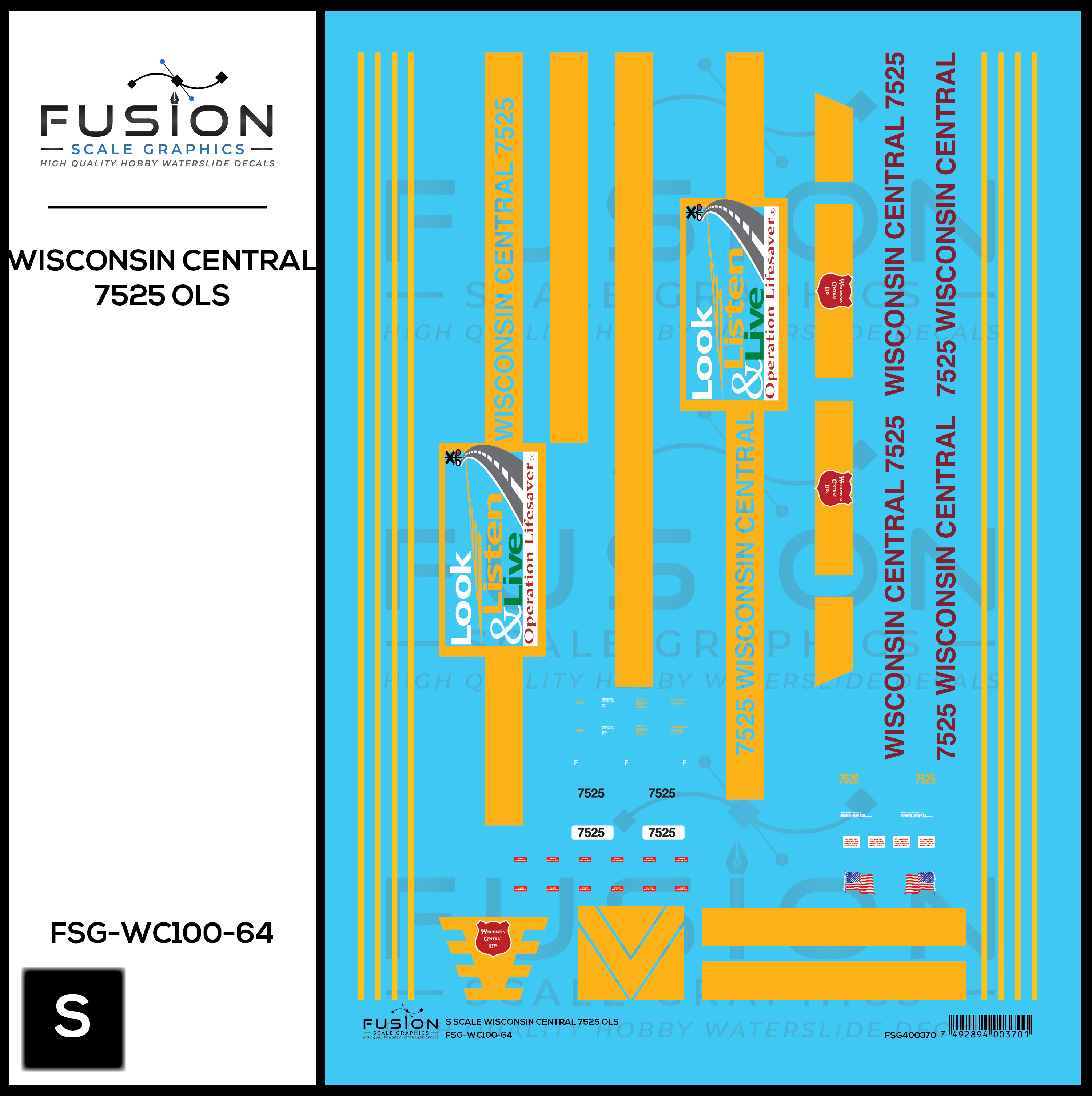 S Scale Wisconsin Central 7525 OLS SD45MQ-3 Locomotive Decal Set