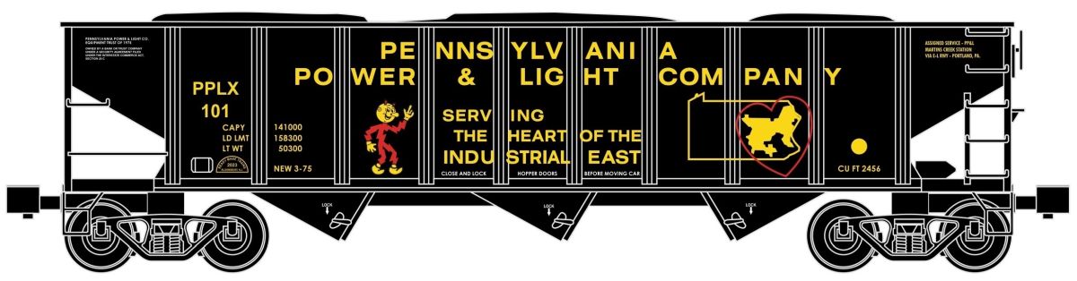 Ready Made Trains O Scale 3 Bay Hopper Pennsylvania w/ Load (Power & Light Company) - RMT66276