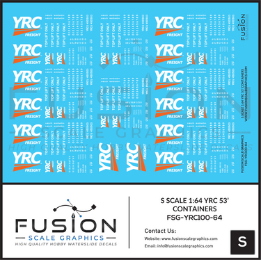 1:64 S Scale YRC Freight 53' Containers Decal Set