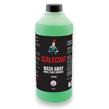 Scalecoat Wash Away Paint Remover is a proprietary product designed for removing paint from plastic model surfaces without causing damage. It's particularly favored by modelers for its effectiveness and quick action formula.