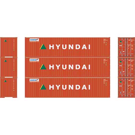 Athearn HO Scale RTR 40' Corrugated Container, Hyundai (3)