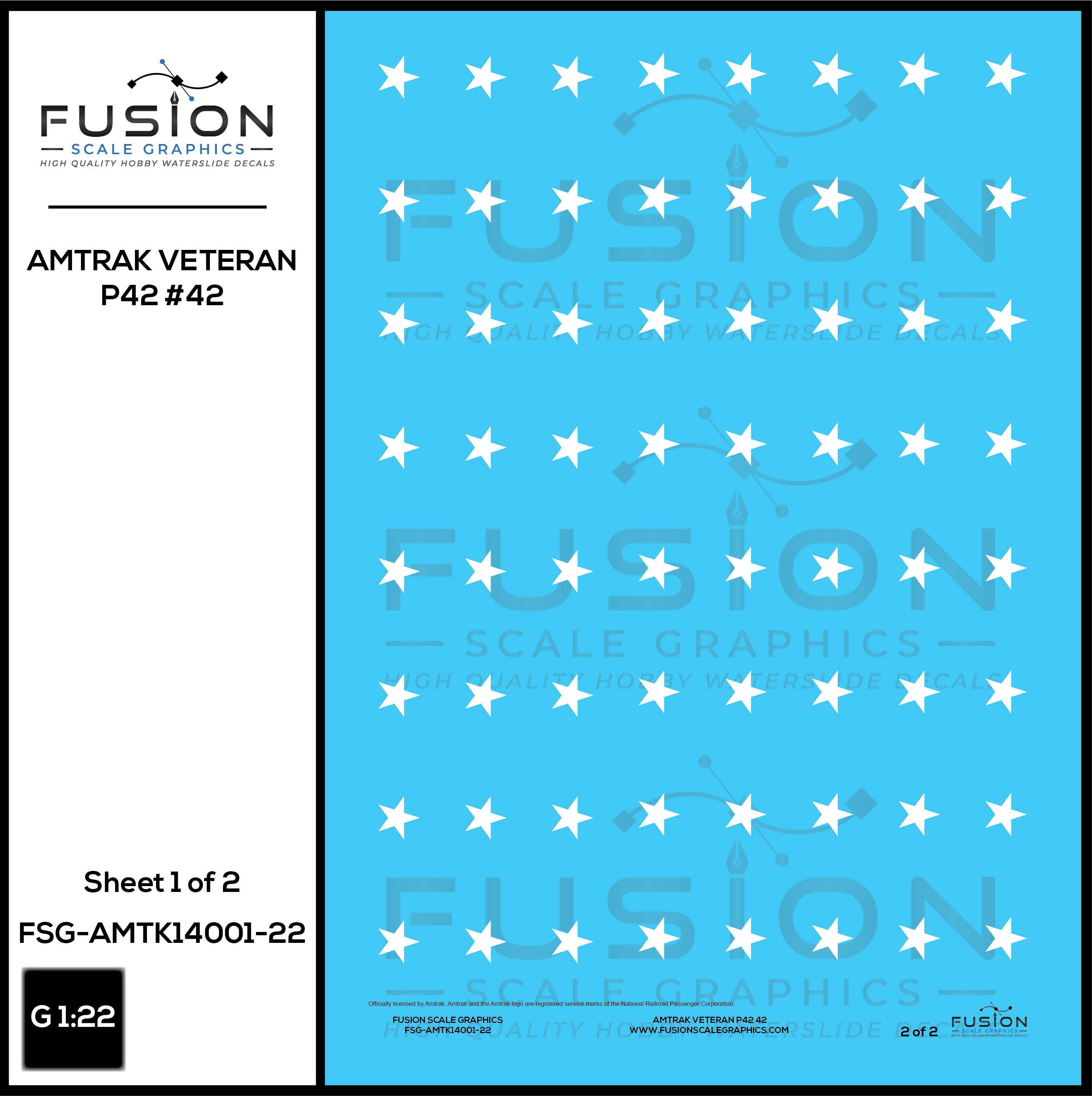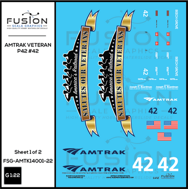 Amtrak GE P42 Veterans 42 Decal Set - 2 Sheet Decal Set