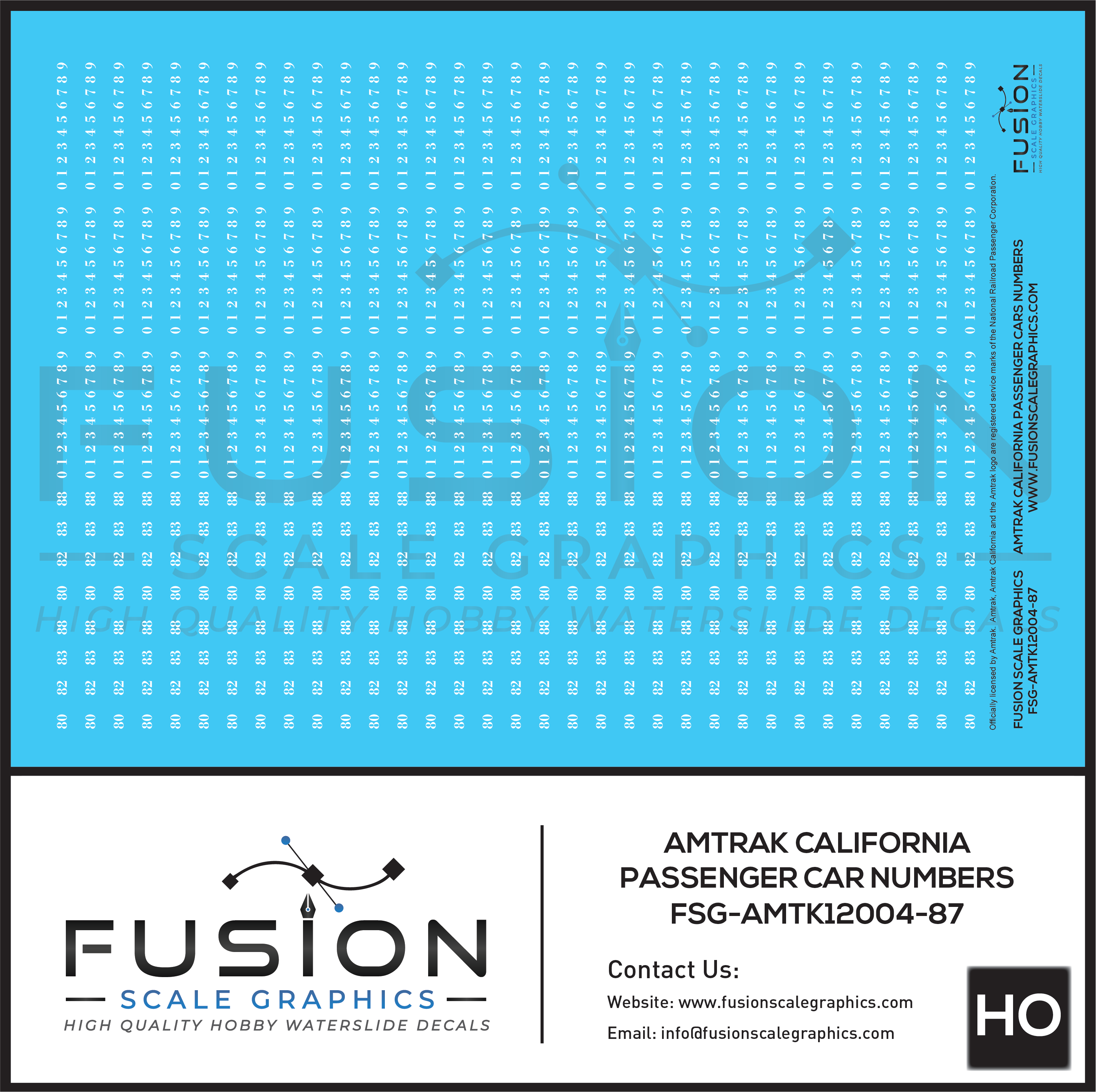 HO Scale Amtrak California Passenger Car Numbers Decal Set