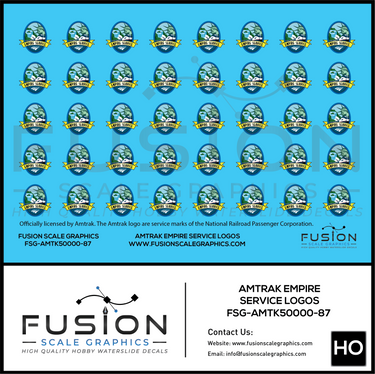 Enhance the authenticity of your HO scale Amtrak Empire Service P42 model with these logo decals. Made from high-quality materials, these decals feature accurate detailing and easy application. Perfect for hobbyists and collectors looking to add realism to their train models.