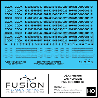 Home HO Scale CGOX Freight Car Numbering Decal Set