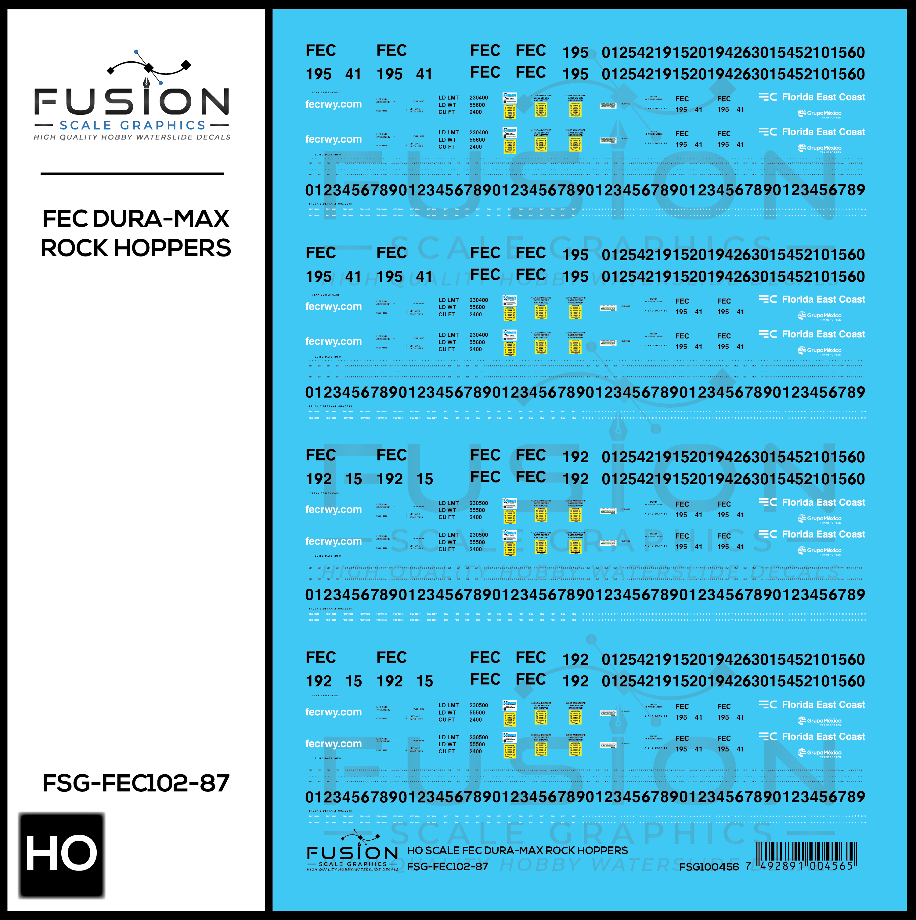HO Scale Florida East Coast Dura-Max Rock Hopper Cars Decal Set