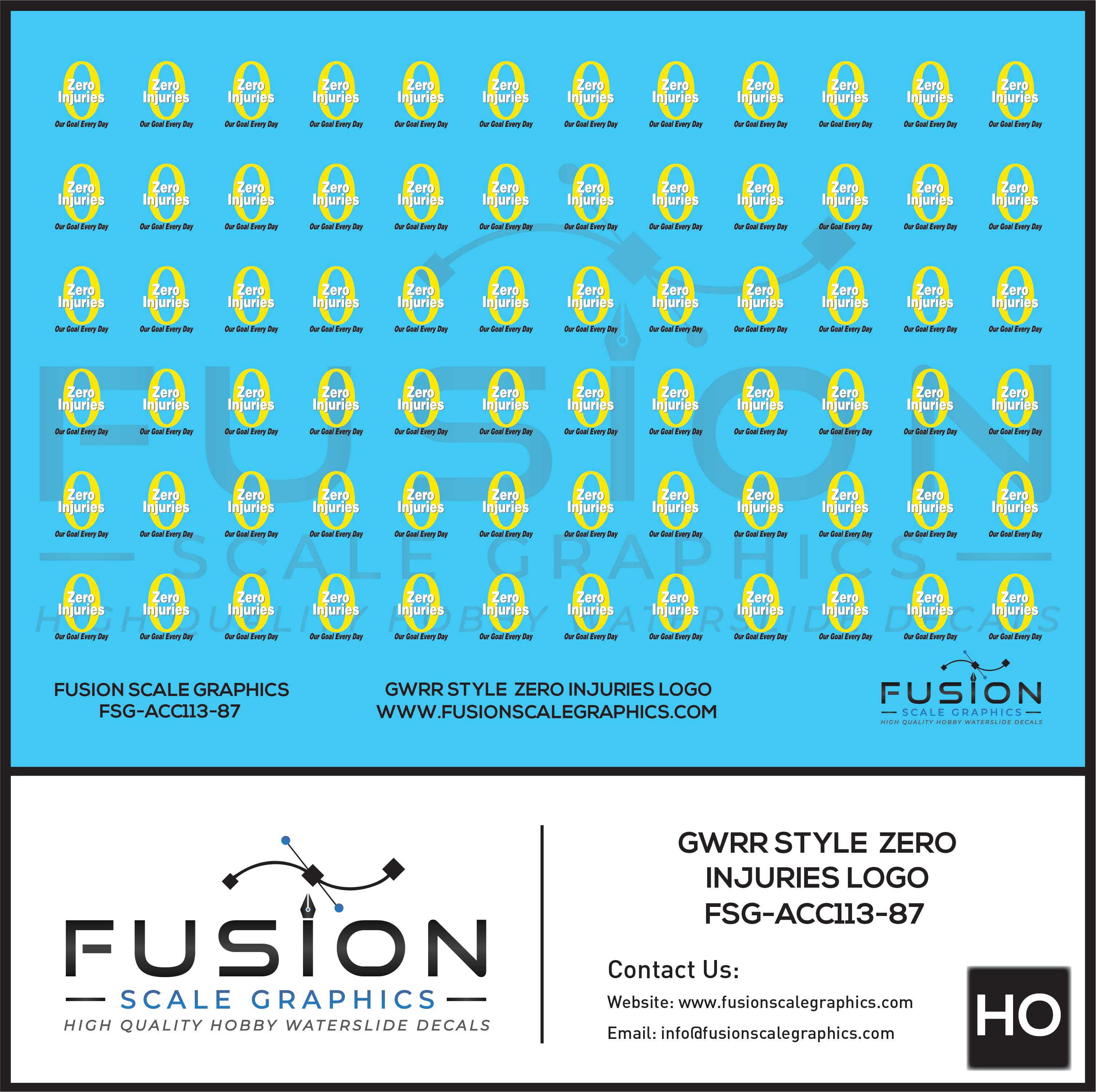 HO Scale Genesee and Wyoming Style Zero Injuries Logo Decal Set