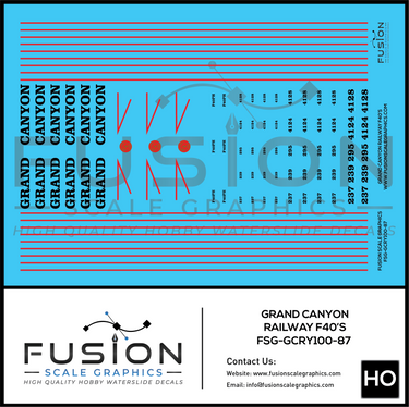 HO Scale Grand Canyon Railway EMD F40PH Locomotives Decal Set
