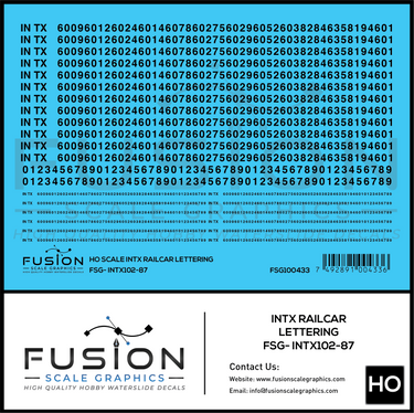 HO Scale INTX Railcar Lettering Decal Set