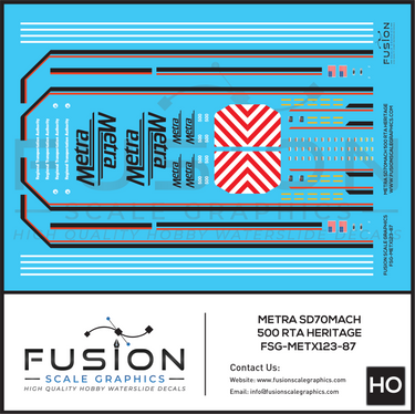 HO Scale Metra 500 RTA Heritage SD70MACH Locomotive Decal Set